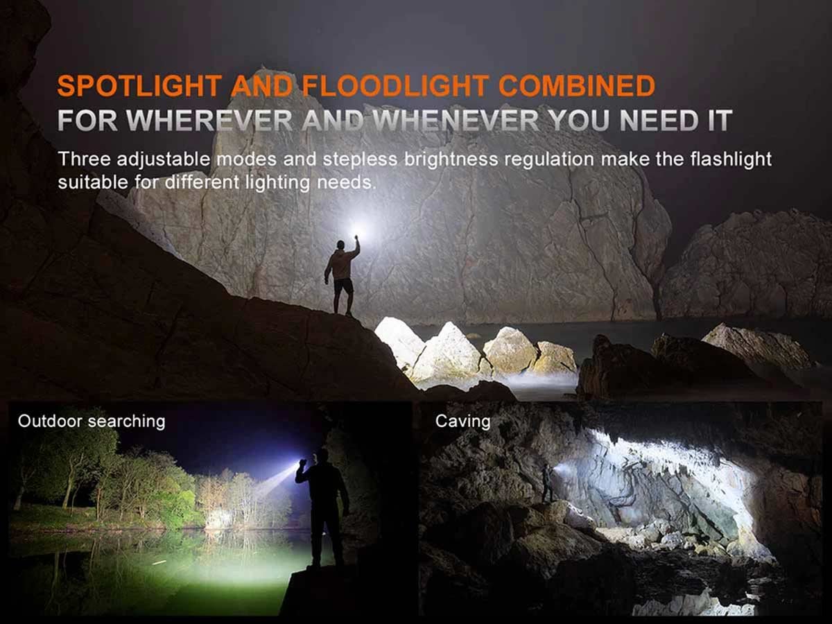 The LR35R Pro has a convenient USB-C charge port, giving you seamless charging in a flash. With power bank functionality, flip that USB-C port to power your daily electronics from smartphones, laptops, and dare we say - another flashlight? This is all thanks to the included dual 21700 batteries, both set with a 6000mAh capacity. This way, you can power the light on the lowest mode for up to 135 hours!