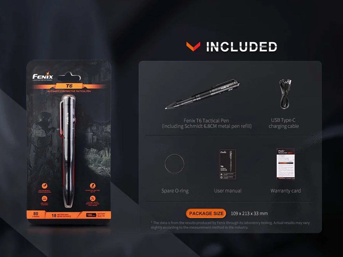 Fenix T6 USB-C Rechargeable Penlight - 80 Lumens - Uses Built-in 100mAh Li-Poly Battery Pack - Black or Blue