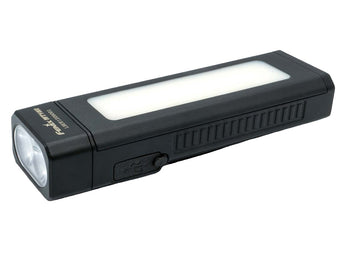The new Fenix WT16R is a multi-functional worklight that combines the features of a spotlight and floodlight. The rectangular shape allows for a small spotlight on its top and a broad floodlight along its front for maximum illumination. Use the front-facing spotlight for a brighter and more focused beam, and the side floodlight for a softer, broader beam for larger areas.