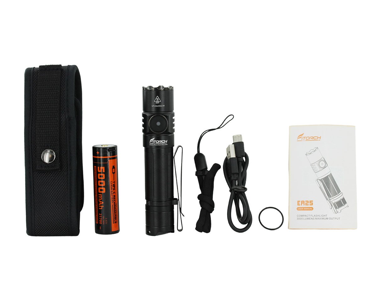 Fitorch EA25 LED Flashlight - Luminus SST70 - 3000 Lumens - Includes 1 x 21700 with Built-in USB-C Charging Port