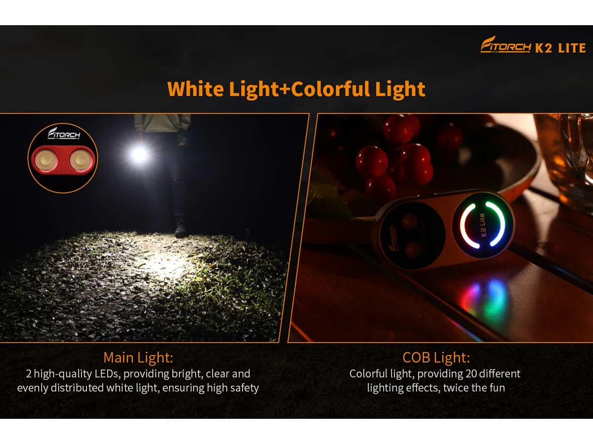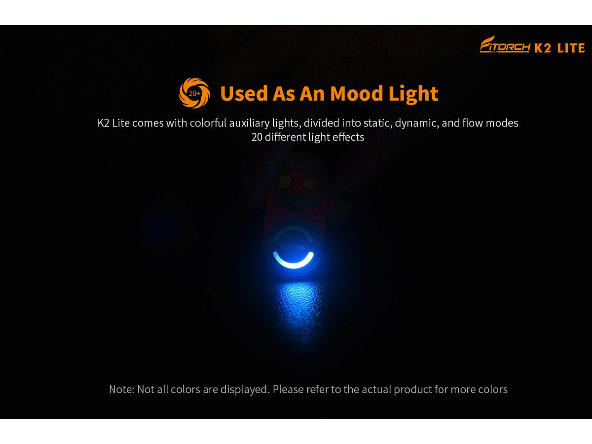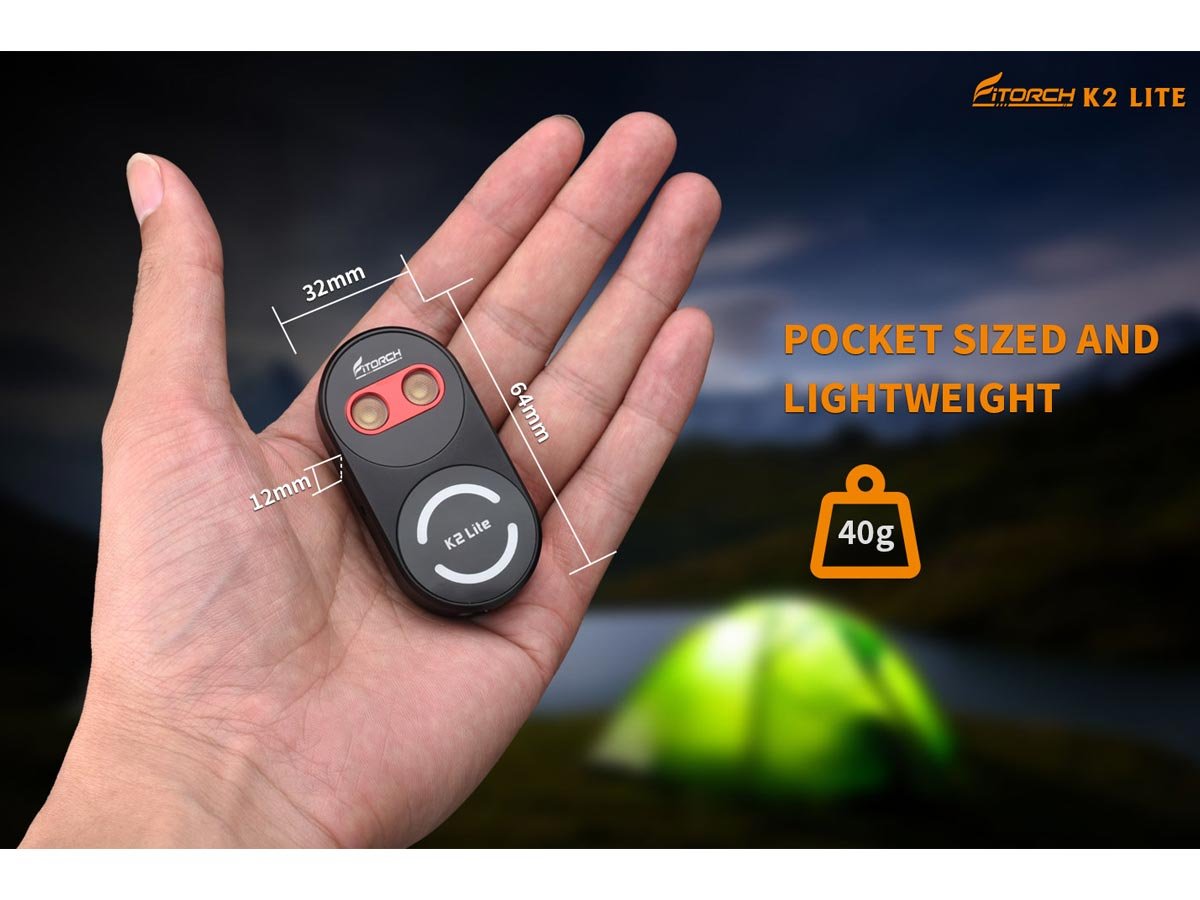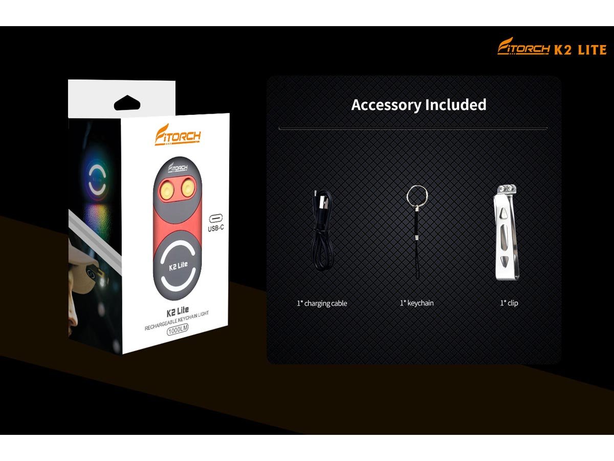 The Fitorch K2 Lite is a remarkable little keychain light with a wide range of modes and features compatible with all sorts of applications, including EDC, outdoor, exercise, emergency, and household uses. The K2 Lite can achieve multiple brightness levels and a strobe mode up to 1,000 lumens with its dual main LEDs. Using its secondary COB light source, it can create 20+ RGB lighting effects in static, dynamic, and flow patterns.