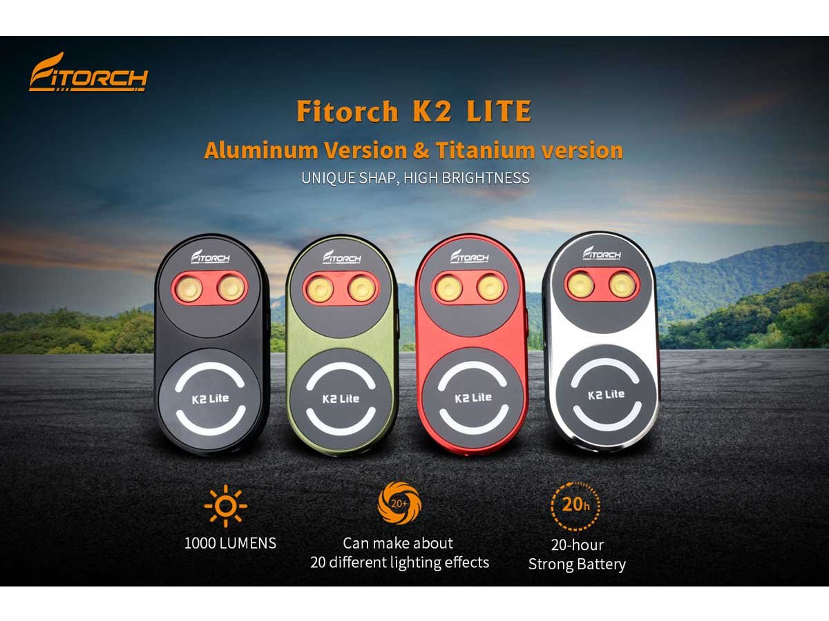 At just 2.5 inches long, the K2 Lite weighs just 60 grams or less! Available in multiple colors and your choice of aluminum or titanium alloy, there's a perfect version of the Fitorch K2 Lite for every keyset, glove box, or home! The innovative rounded design of the K2 Lite combines sleek modern aesthetics with the lovable design inspiration of a baby owl! More than cute, however, it is resistant to impacts and dust exposure to survive various conditions.