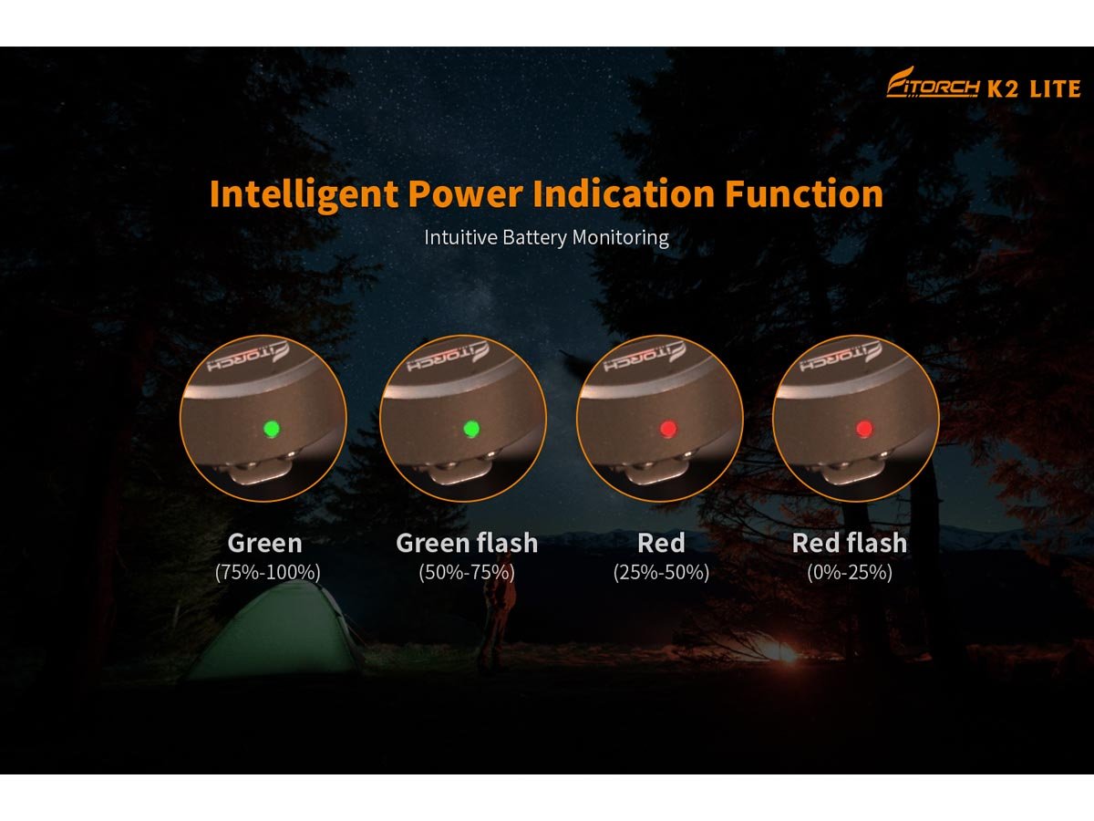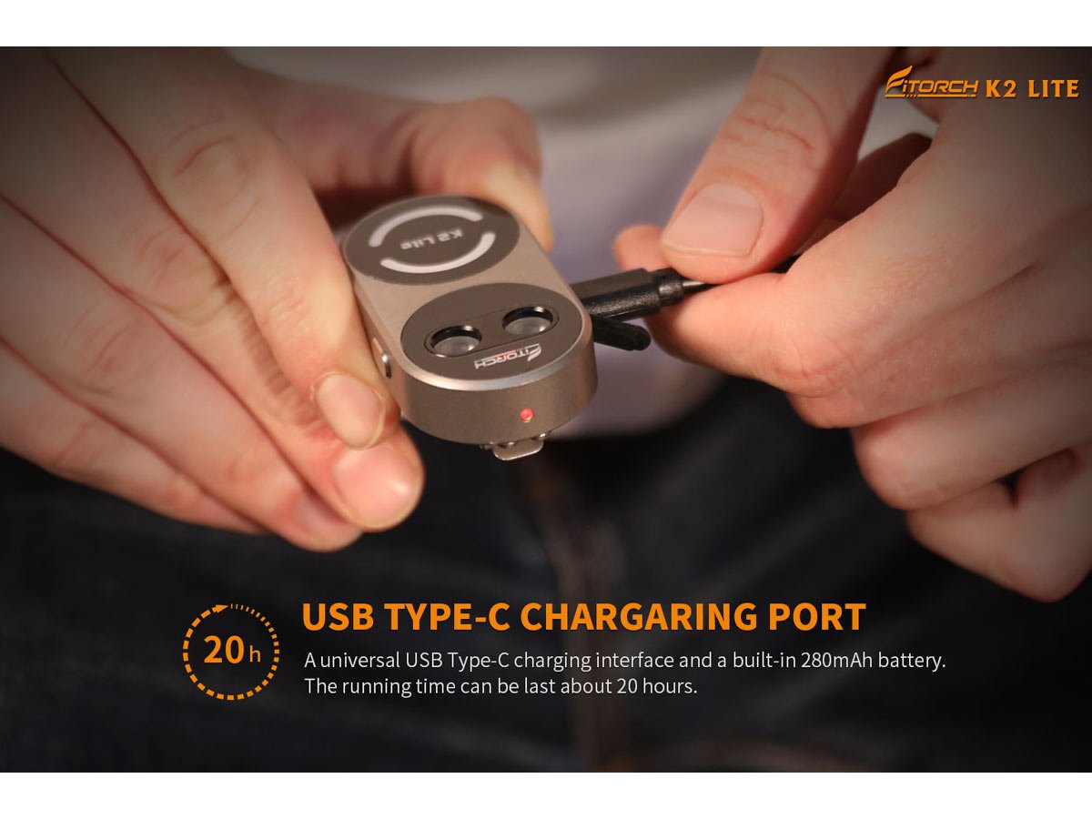 The light is outfitted with a USB-C rechargeable li-ion battery, with a fast charge speed of just 1 hour. Reaching a 20-hour max runtime, charging breaks are fewer and farther between. The K2 Lite is equipped with a color-changing indicator LED that lets you know when to recharge.