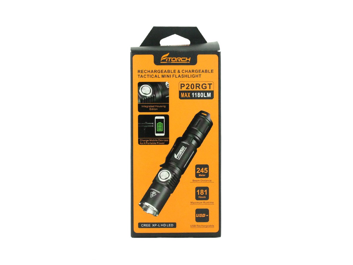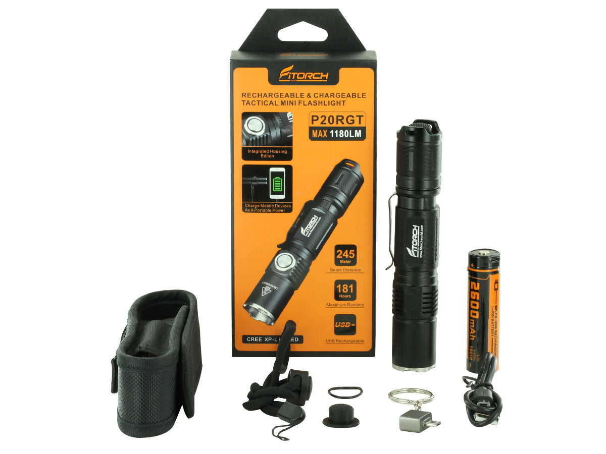 Fitorch P20RGT Rechargeable LED Flashlight and PowerBank - CREE XP-L - 1180 Lumens - Uses 1 x 18650 (included) or 2 x CR123A