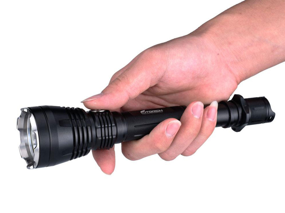 The PR40 was constructed from high quality aluminum alloy for its lightweight but durable qualities. The military grade hard-anodized finish provides protection from corrosion and scratches from everyday use. Not only impact resistant up to 1 meter, but is O-ring sealed for a waterproof rating of IPX-8, so you can use it in any weather. The dual switch design is user friendly and the buttons are easily located with a gloved or bare hand. The tail switch can be used for constant On/Off or momentary tactical illumination. The side switch is for choosing a brightness level and accessing specialty modes. The side switch is an integrated battery power indicator that lights up around the button to let you know remaining power in real-time. Read more about the PR40 modes and special modes or refer to the downloadable user manual! Whether you are using the PR40 as a tactical, hunting, or search light, Fitorch has the power and innovation to light your way.