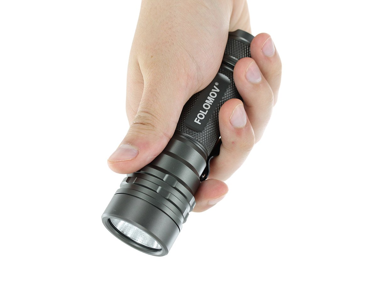 For when you need a flashlight that you can use every day or in extreme cases, use the Folomov 18650L! Its maximum output of 1600 lumens and max beam distance of 450 meters, combined with its wide variety of sub-modes, make this light perfect for tactical applications and long-term camping trips. By pressing its single tail switch seven times, you can easily swap between Illumination and Tactical Mode to stay prepared when you're deep in the woods or in a tactical field.