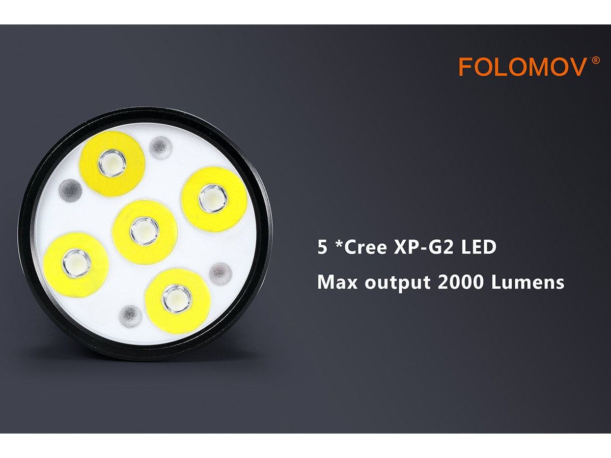 Folomov 26650S LED Flashlight - 5 x CREE XP-G2 - 2000 Lumens - Includes 1 x 3.7V 5000mAh 26650
