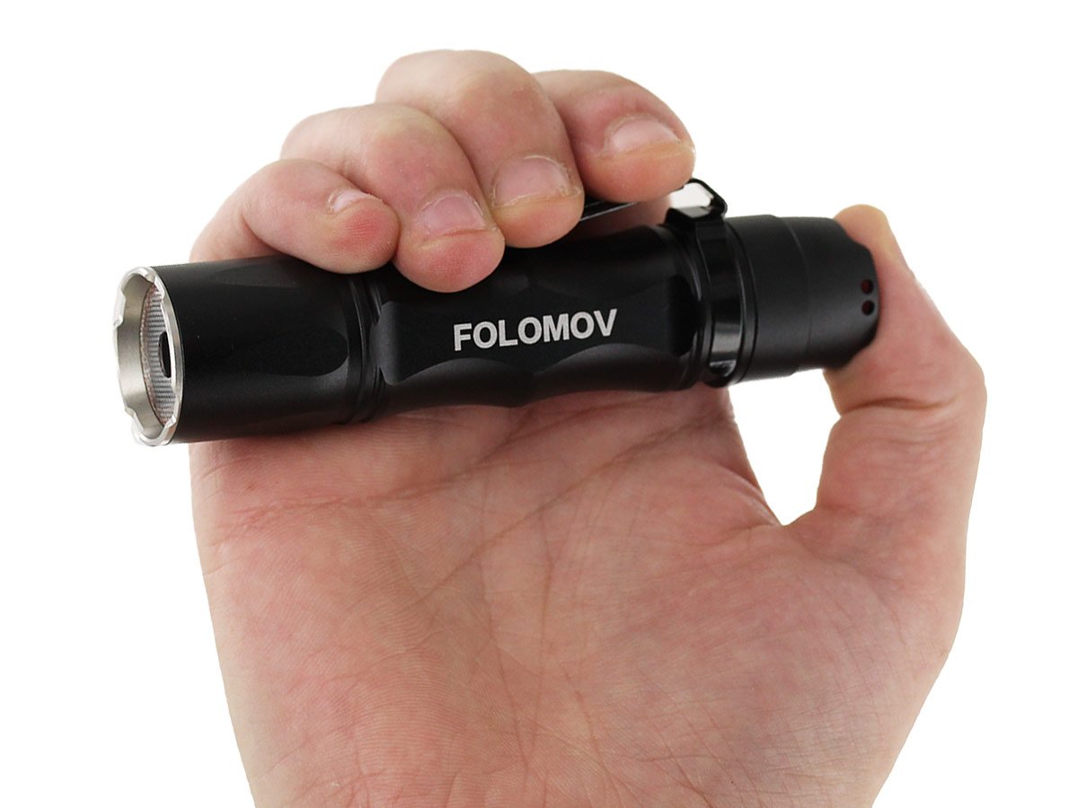 Folomov's Hero is built to go wherever you go. This hybrid light combines everyday carry with tactical style features so you can use it for hobbies and work. The outstanding max brightness of 2,300 lumens in turbo lets you easily spot hiking trail hazards. The TIR lens offers an expansive flood beam that can reach over 200 meters, so you'll be able to illuminate your whole campsite. Measuring in at only 4.21 inches with an included pocket clip and holster, this light is easy to handle, transport, and store. The Hero includes strobe and SOS modes to use for signaling in emergencies, making it a great light to take on overnight trips.