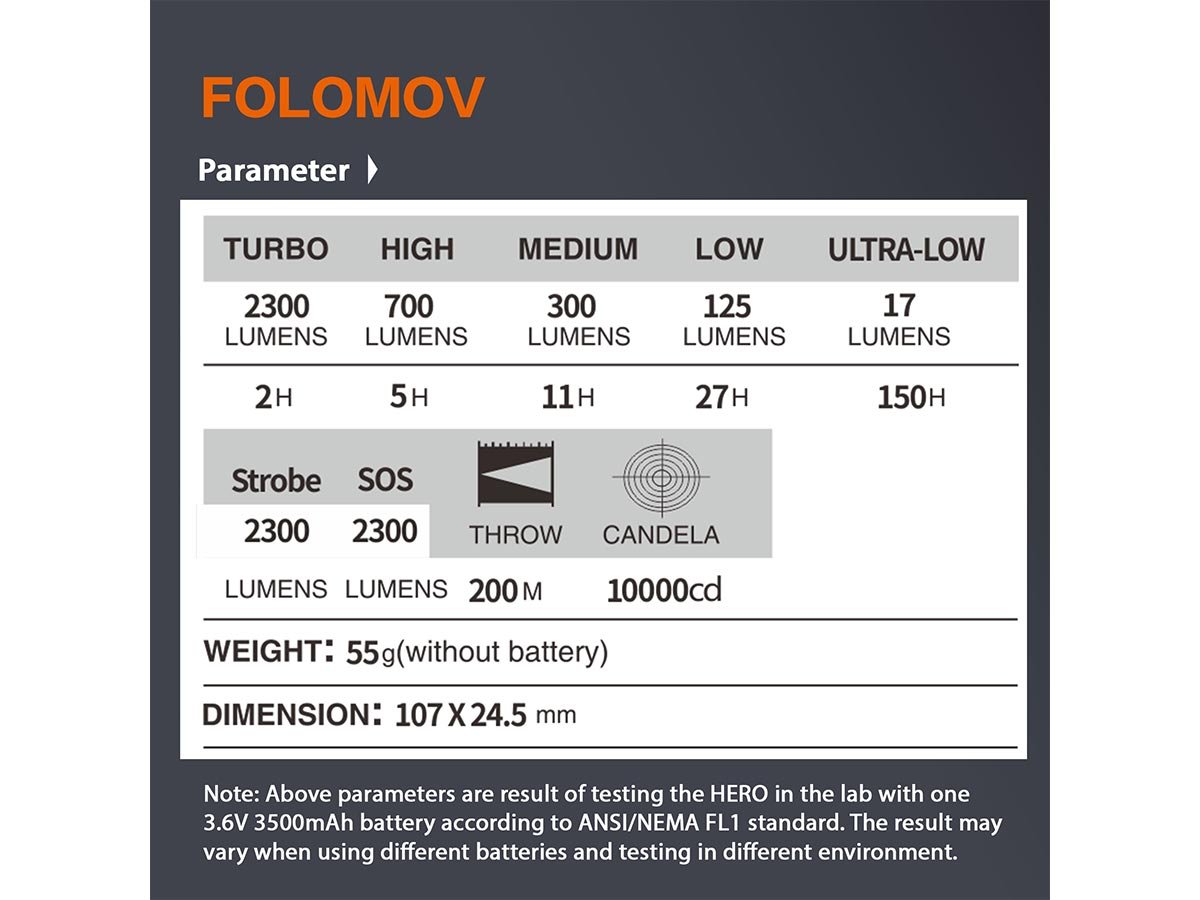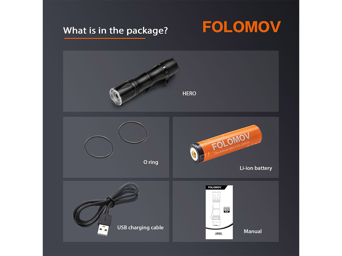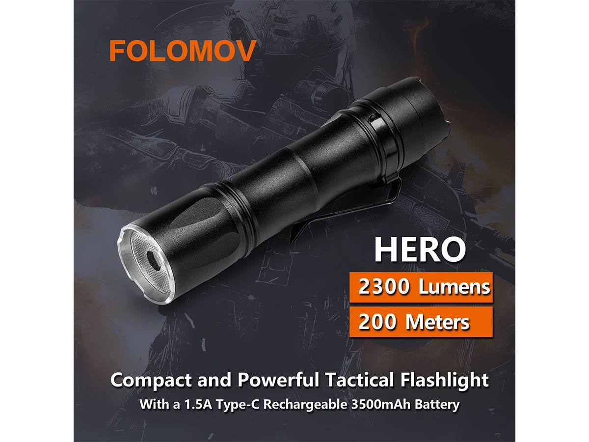 Folomov Hero LED Flashlight - CREE XHP50.2 - 2300 Lumens - Includes 1 x 18650