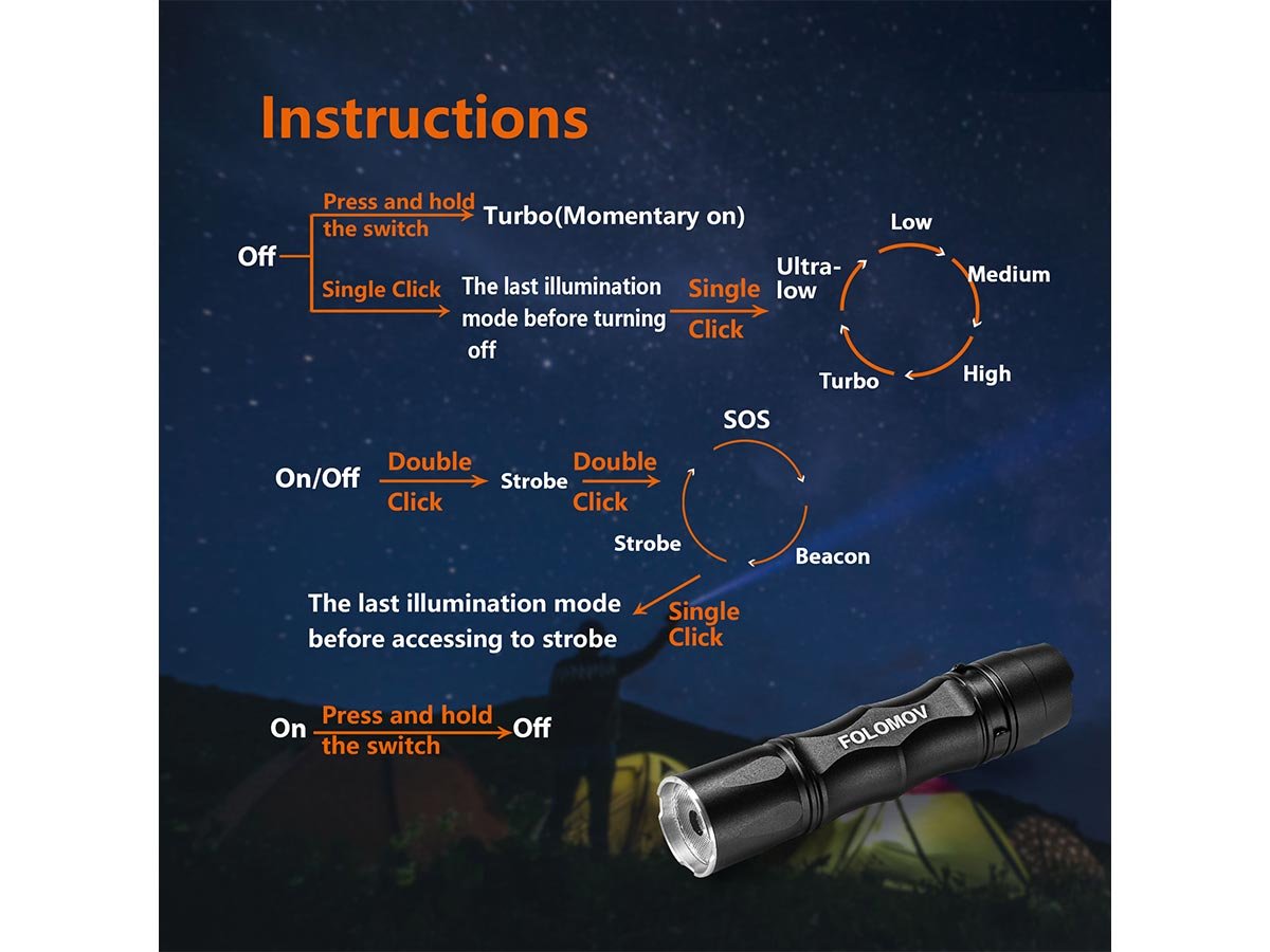 | Turbo | High | Medium | Low | Ultralow | Strobe | SOS | |