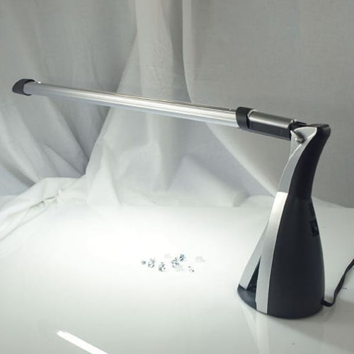 For a sleek modern solution to counter top lighting the Horizon Diamond Grading Lamp from GemOro is the brightest thing on the market. Crafted with jeweler desks and presentation counters in mind, the Diamond Grading Lamp offers natural daylight illumination via its T5 13W fluorescent light tube which distributes light evenly across flat surfaces. The 6000k light color temperature allows for clear and accurate viewing of diamonds and other precious gems in a professional or hobbyist environment.