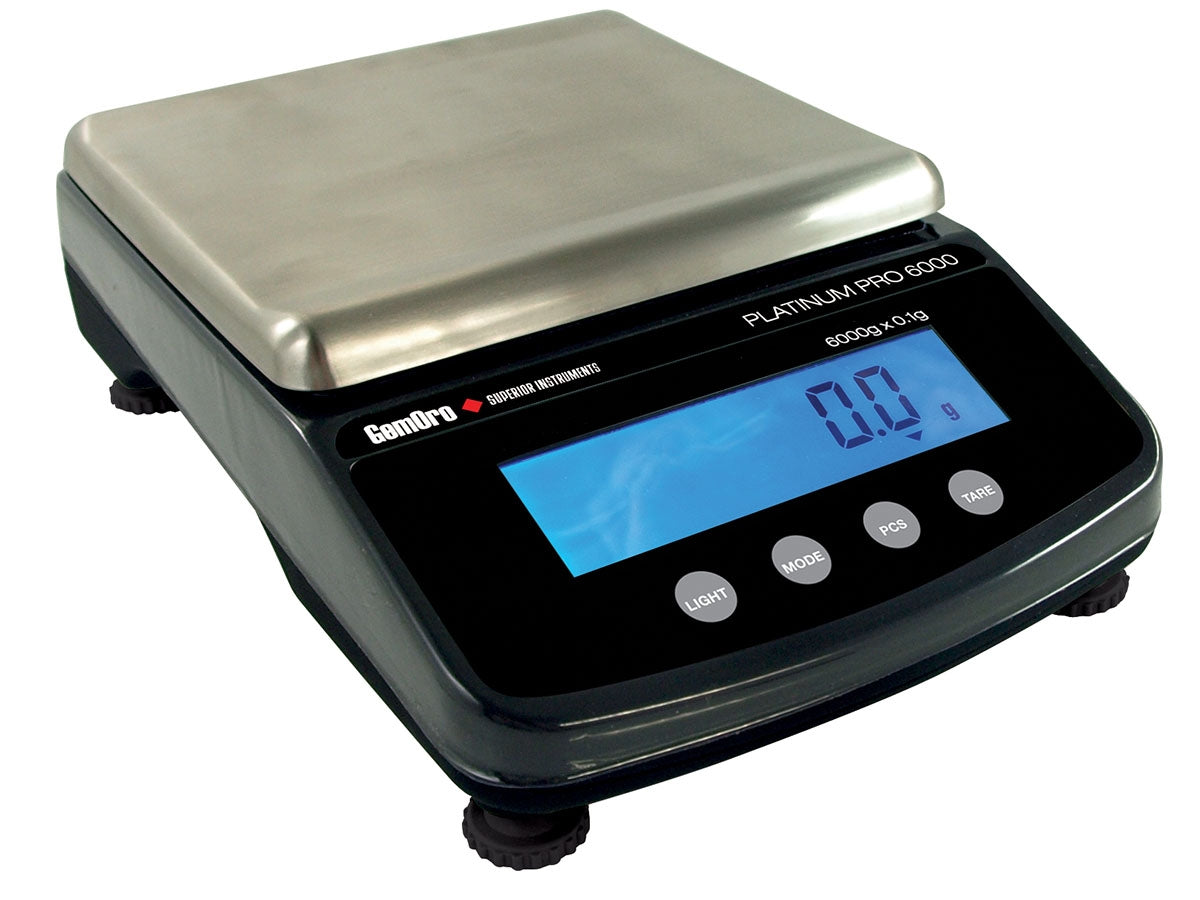 - 6000g x 0.1g, ozt, oz, dtw, kg, and lb