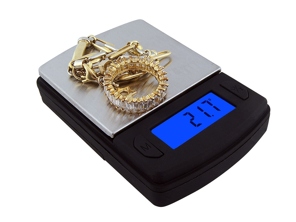 The GemOro Platinum V600M is the ultimate mini scale. With an accuracy of 600g x 0.1g,.this scale is perfect to carry with you and use. Included is a built-in cover that also serves as a weighing tray for holding jewelry, so it is a practical product without the need to bring an individual tray. The backlit LCD display is easy to see and will display the weight crisply on screen.