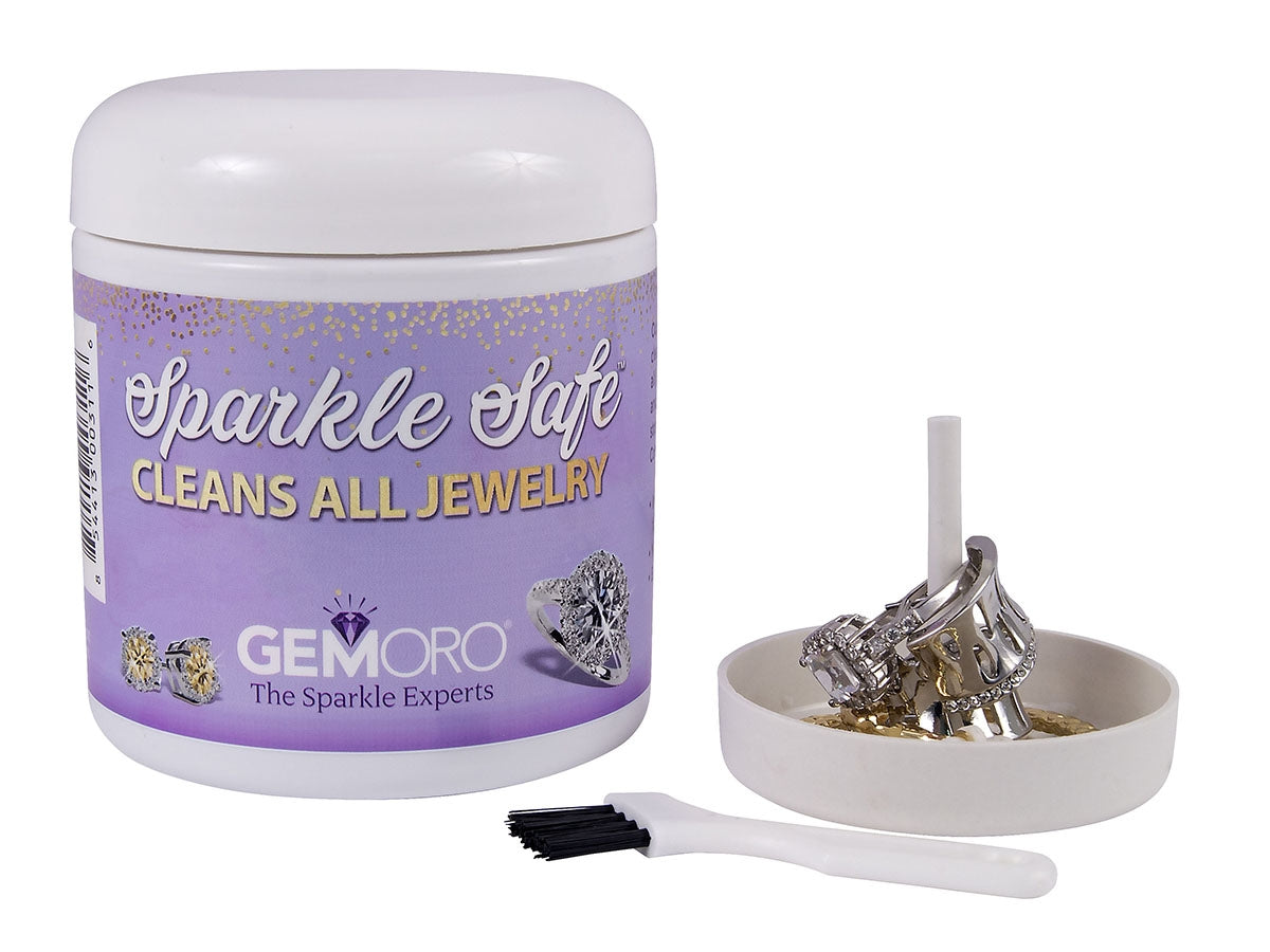 The GemOro Sparkle Safe Jewelry Cleaner will clean all of your jewelry safely and efficiently. It works on diamonds, gold, and platinum, plus soft permeable stones like pearls and opals. No matter what may be in your collection, any serious jewelry-owner will want to own the GemOro Sparkle Safe Jewelry Cleaner to bring vibrancy back to the most delicate of jewels.