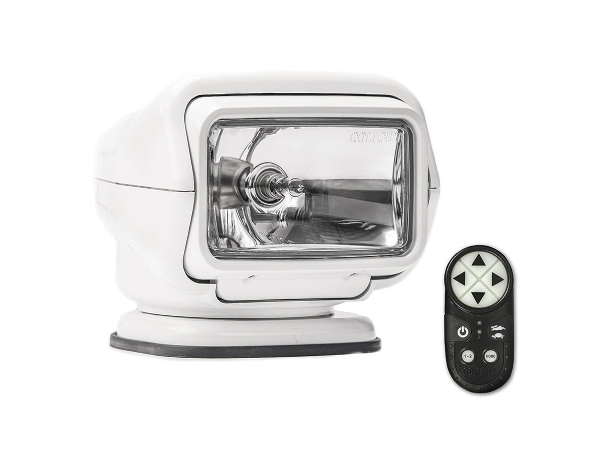 The GoLight Stryker ST Halogen Searchlight is an invaluable hands-free lighting device for professions such as utility work, fire/search & rescue, military, law enforcement, and recreational outdoor activities like boating, off-roading and trail maintenance. This model of the Stryker Halogen series is not only portable but is also controlled by a wireless remote. The sturdy magnetic base is easily attached and detached to different metal surfaces and vehicles without using screws and bolts. Once mounted in the desired location, the Stryker is powered by the included 12V DC cord and operated with the touch of your finger. Its head is capable of a 370° rotation, 135° tilt for precision lighting. GoLight features an unrivaled lighting system - the CR5 Pentabeam II technology which when paired with an advanced parabolic reflector, you get a 3113 foot beam that can cut through dense fog and smoke. Rated for use on land and sea, it is protected against weather, UV rays and saltwater. Once you've experienced the GoLight searchlight power and innovation, you'll never want to go back to your old search and spotlights.