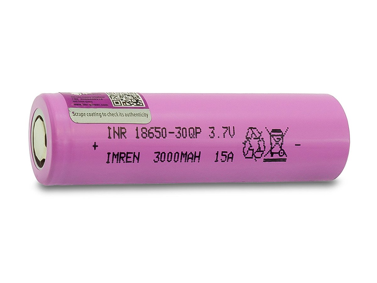 Imren 30QP INR 18650 3000mAh 3.7V Unprotected High-Drain 15A Lithium Ion (Li-ion) Flat Top Battery