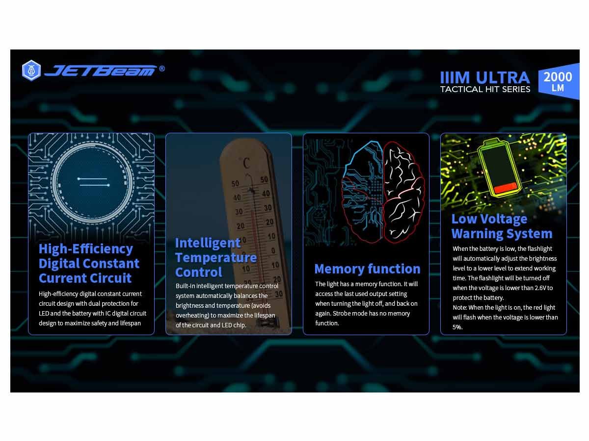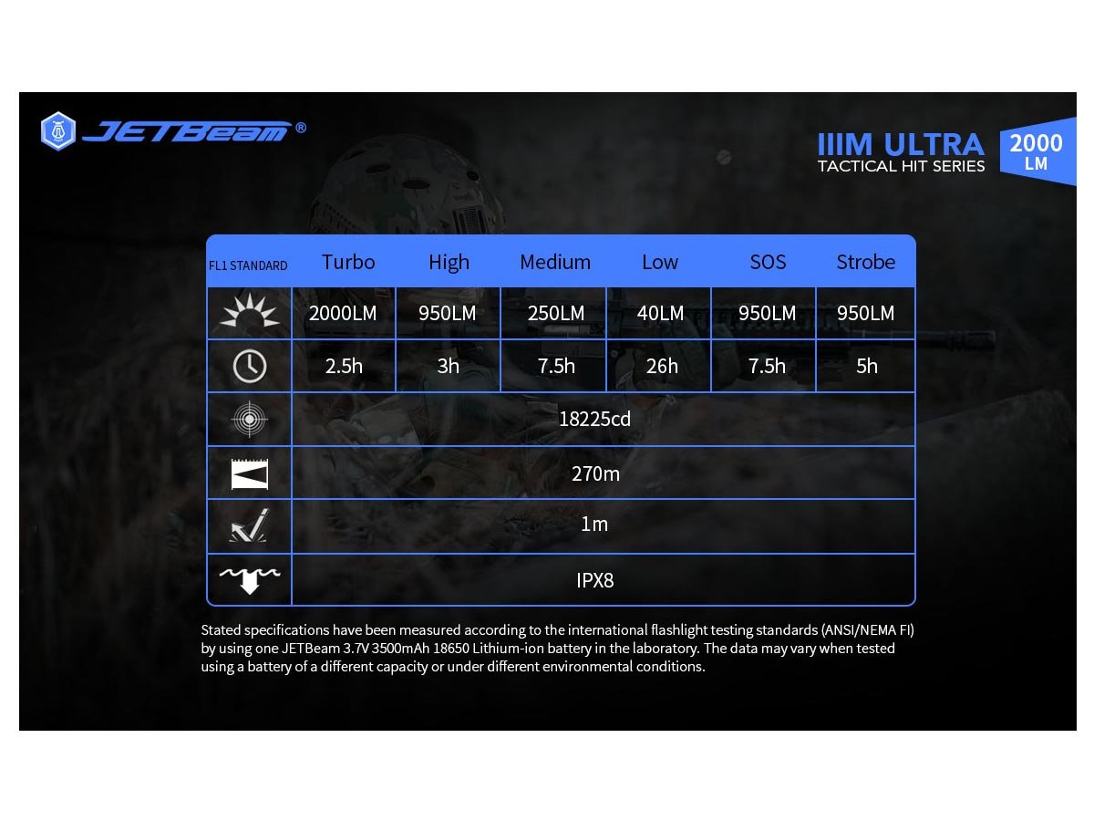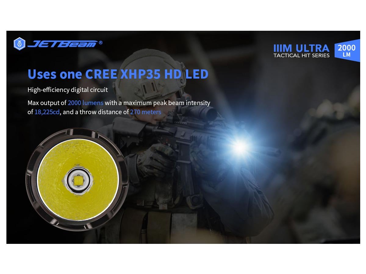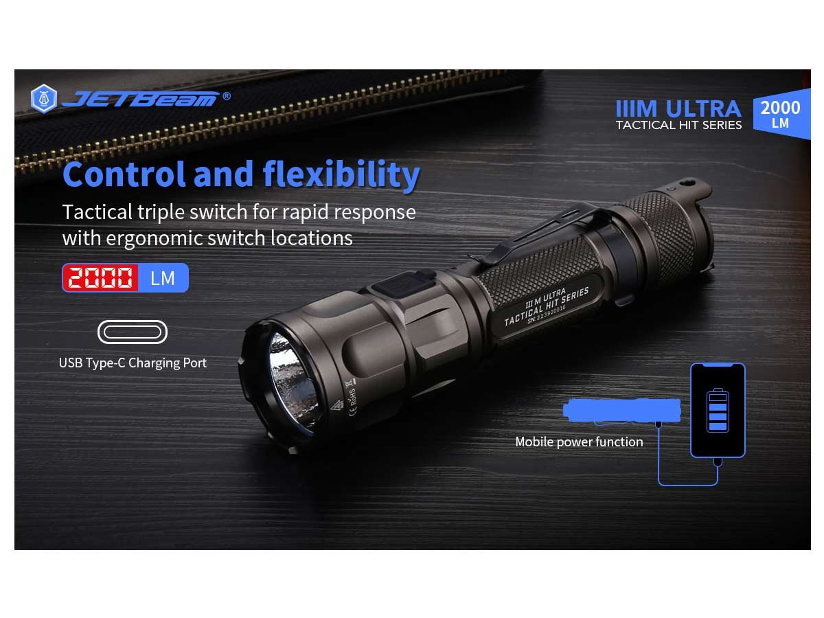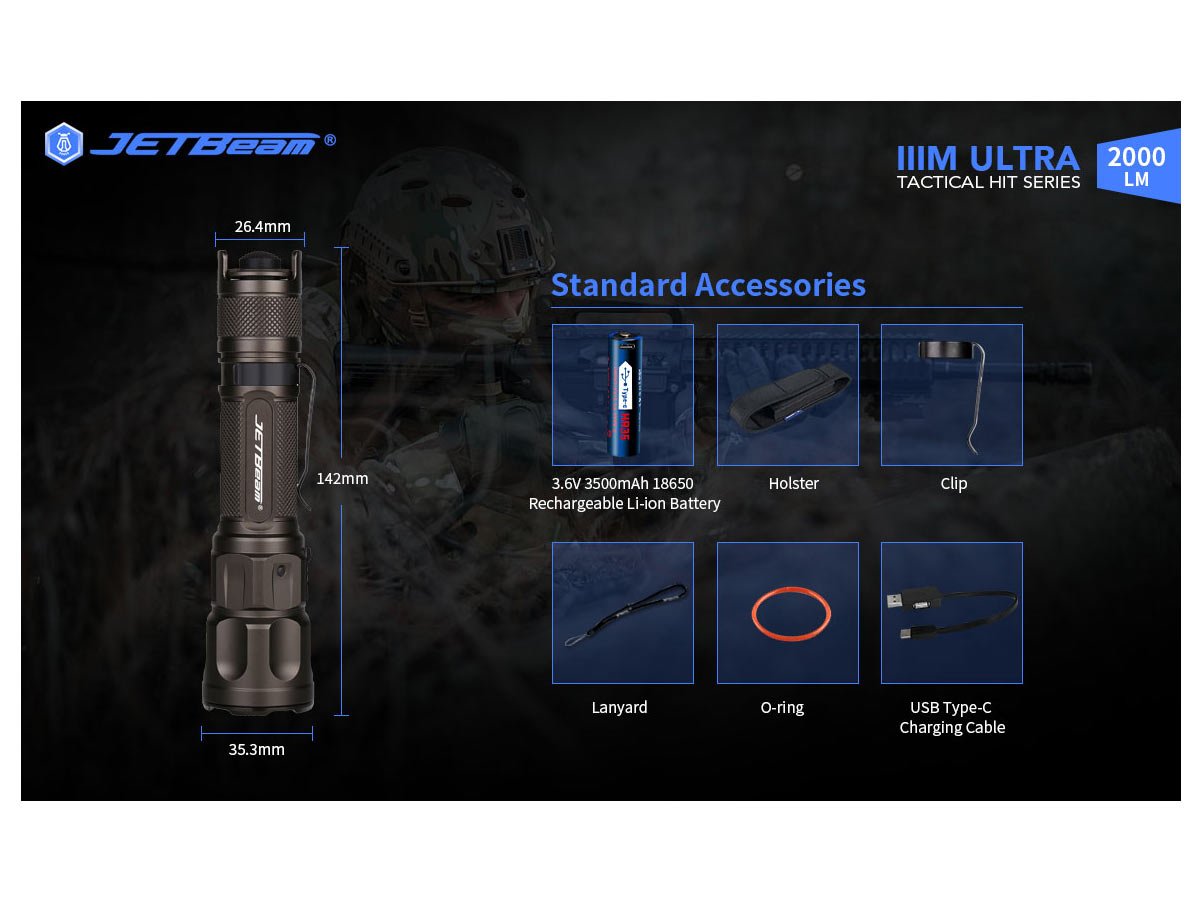 Jetbeam IIIM-ULTRA USB-C Rechargeable LED Flashlight - CREE XHP35 HD - 2000 Lumens - Includes 1 x 18650