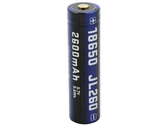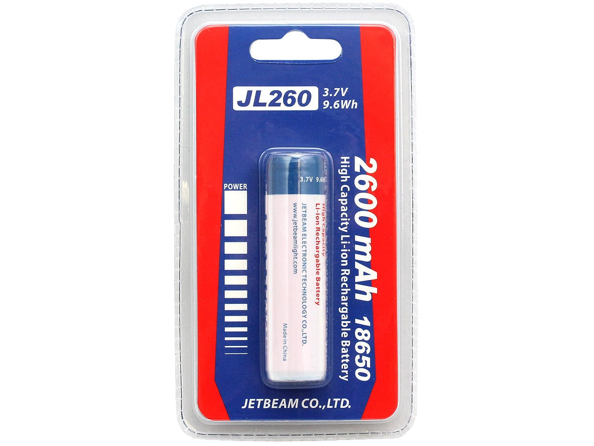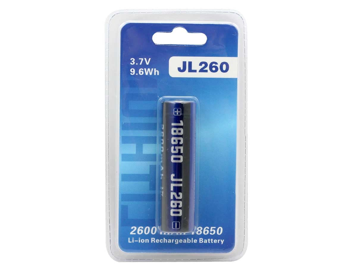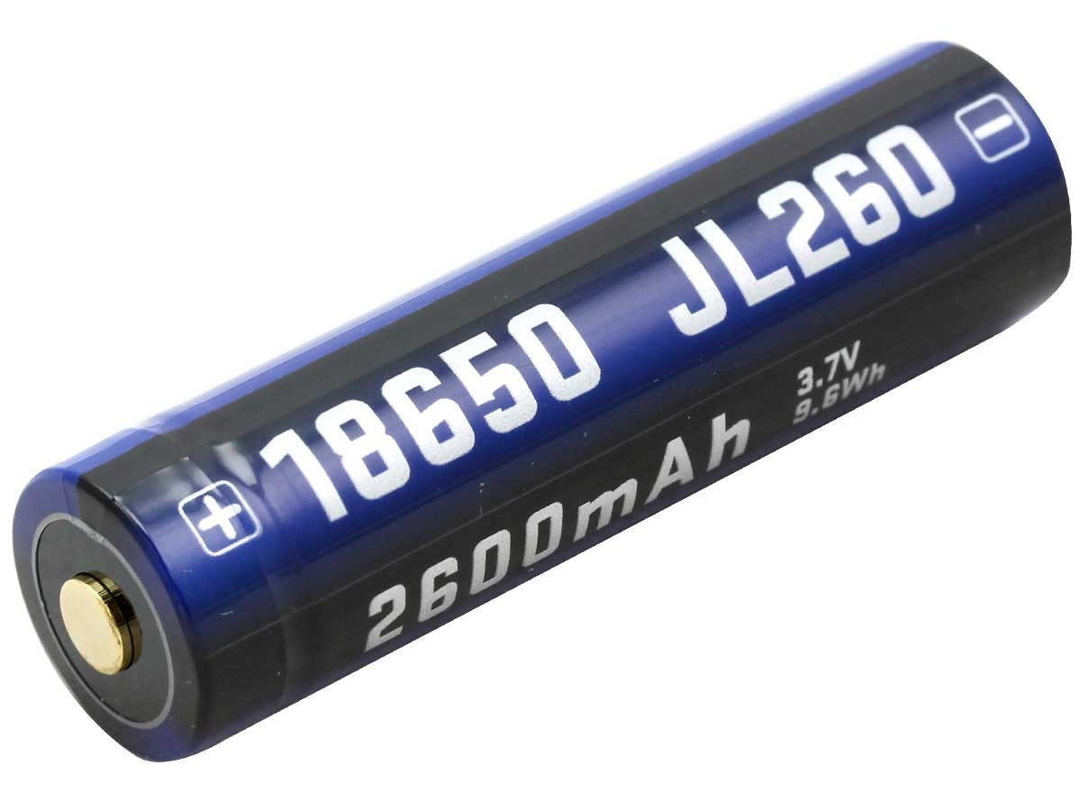 The JL260 is a new battery from recognized flashlight and battery manufacturer JETBeam. This is an 18650 lithium-ion rechargeable battery. It is 3.7V in voltage, and it has a capacity of 2600mAh(milliAmpere). The JL260 is able to be charged and recharged up to 500 times. The charging current averages 1A (Amp), with a maximum of 2A. Its discharge/output current is 4A. The warranty on this item is JETBeam's 12 month free warranty. This battery contains overcharge, over-discharge, and short circuit protection, so your battery remains in the best shape possible for as long as possible. The JETBeam JL260 features live end protection plastic package technology, which offers protection from fire and potential explosions, and it allows the battery to have anti-shock properties and to be tougher than a standard rechargeable battery without the live end protection technology.