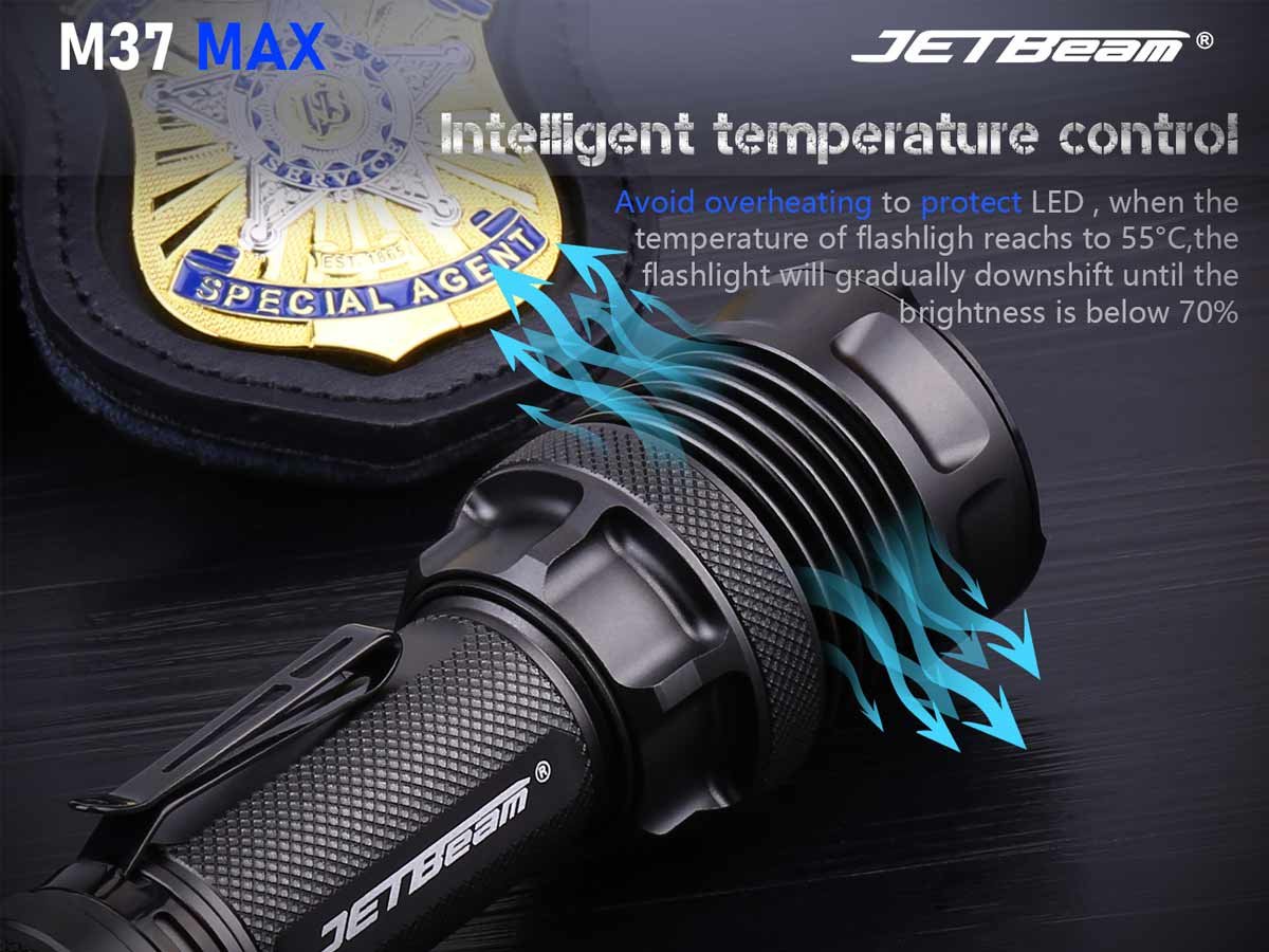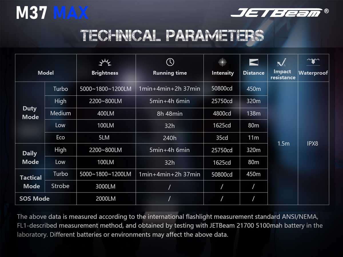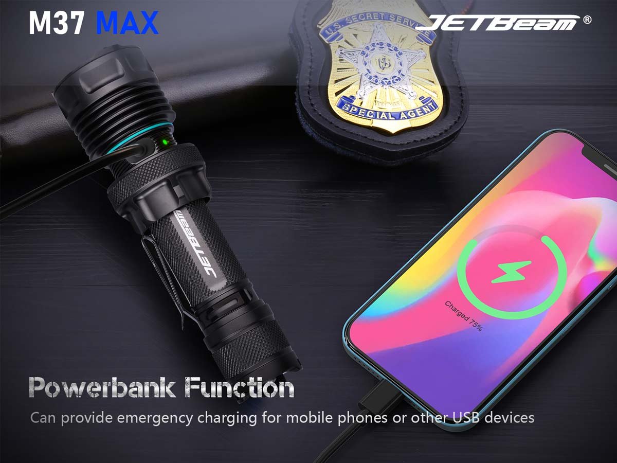 JETBeam M37 Max USB-C Rechargeable LED Flashlight - 5000 Lumens - CREE XHP70.3 HI - Includes 1 x 21700