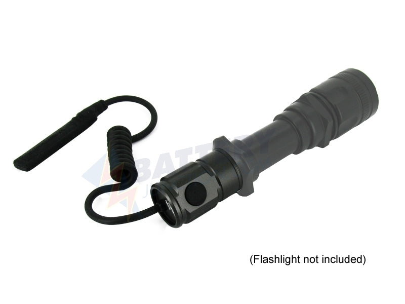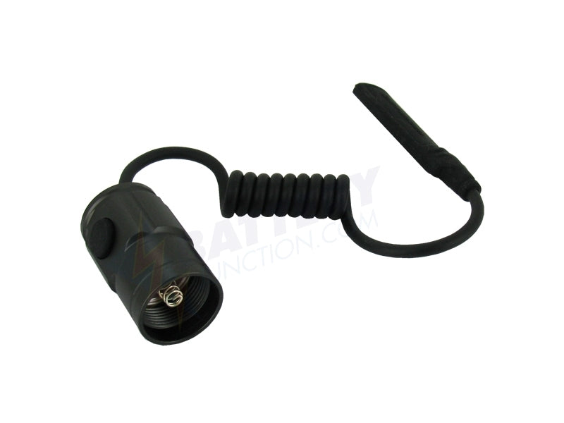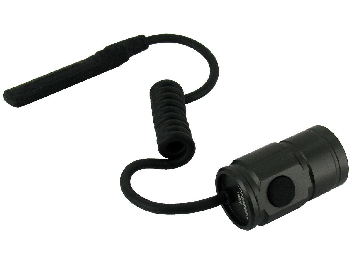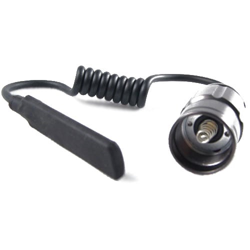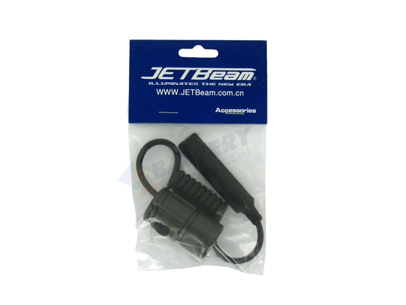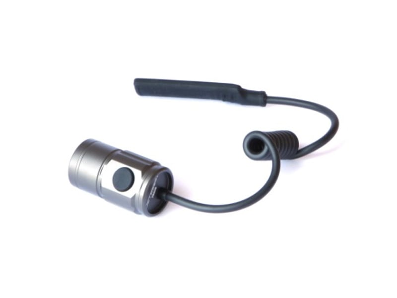 The JETBeam RM-06 remote pressure switch fits the JETBeam 3M Pro, WL-S2, and RRT26 flashlights. It has a black/grey finish and is HA III military-grade hard anodized. It has both a pressure remote and on/off button and a coiled extendable cord. The RM-06 pressure switch is a must when mounting your JETBeam as a weapon light!