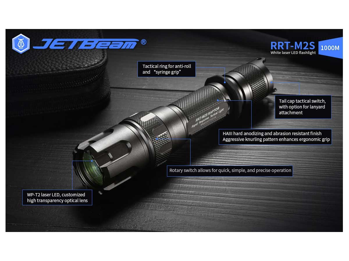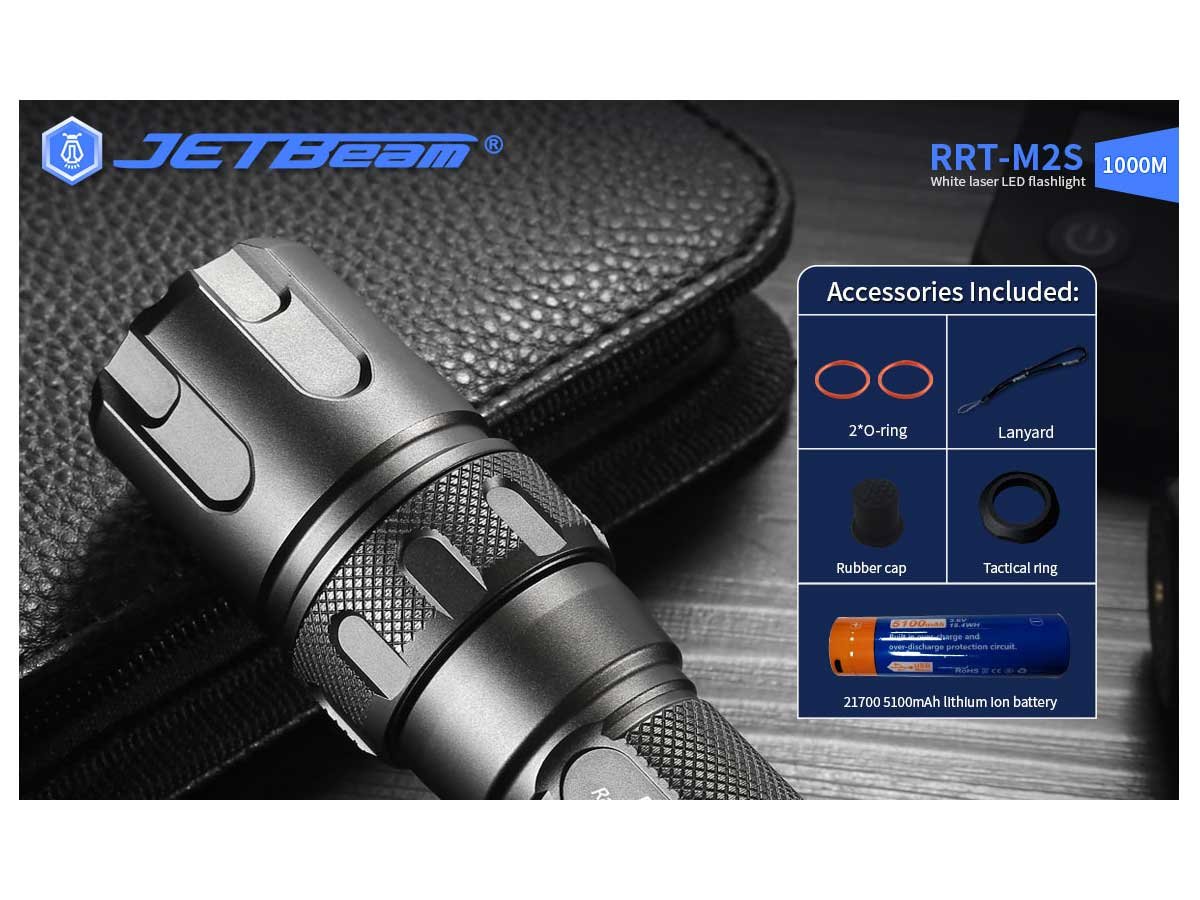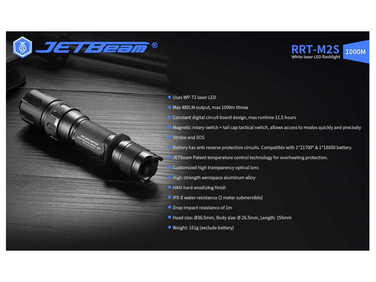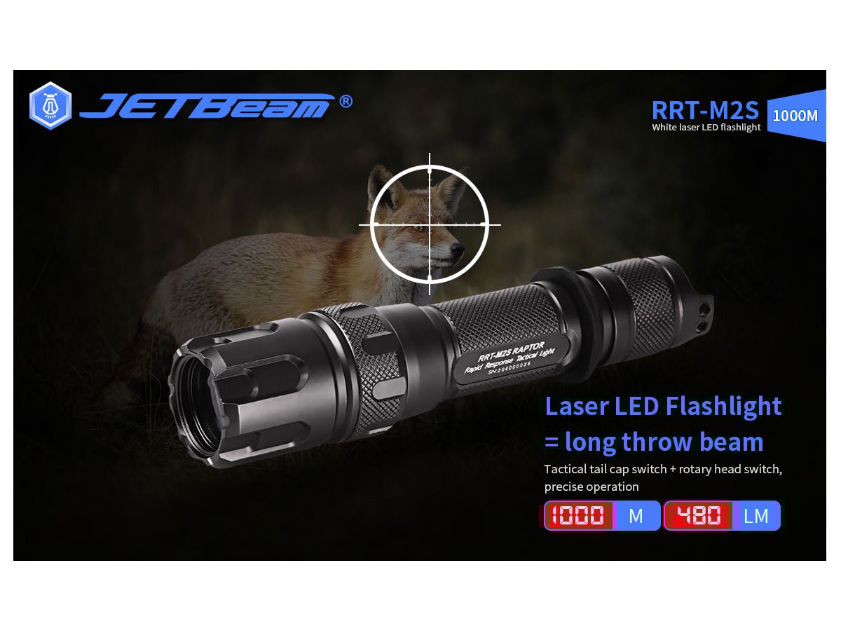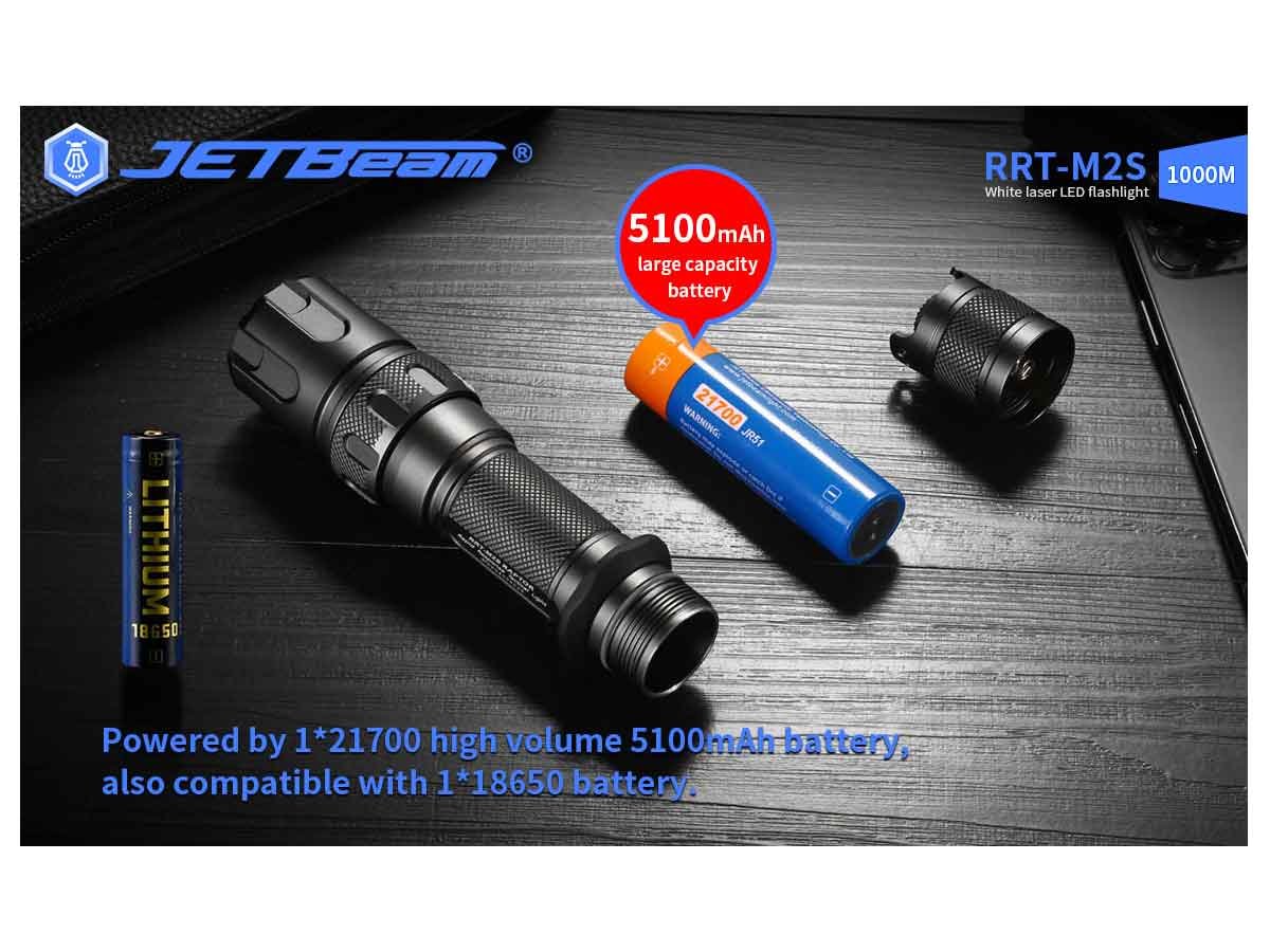 Jetbeam RRT-M2S White Laser Tactical Flashlight - 480 Lumens - Includes 1 x 5100mAh 21700