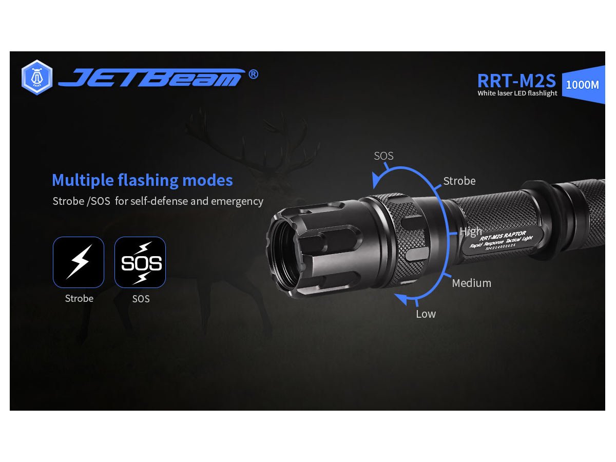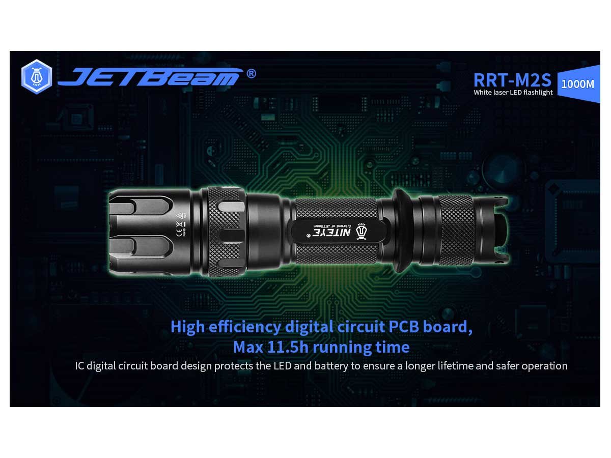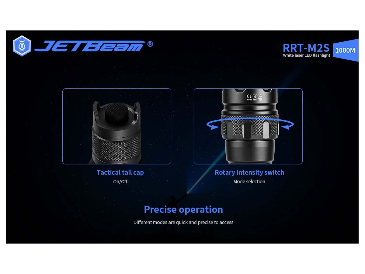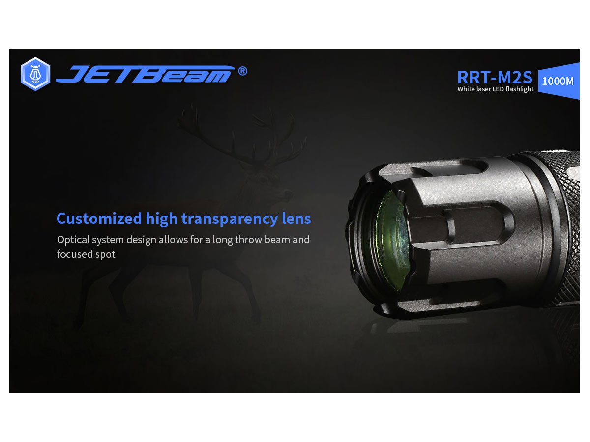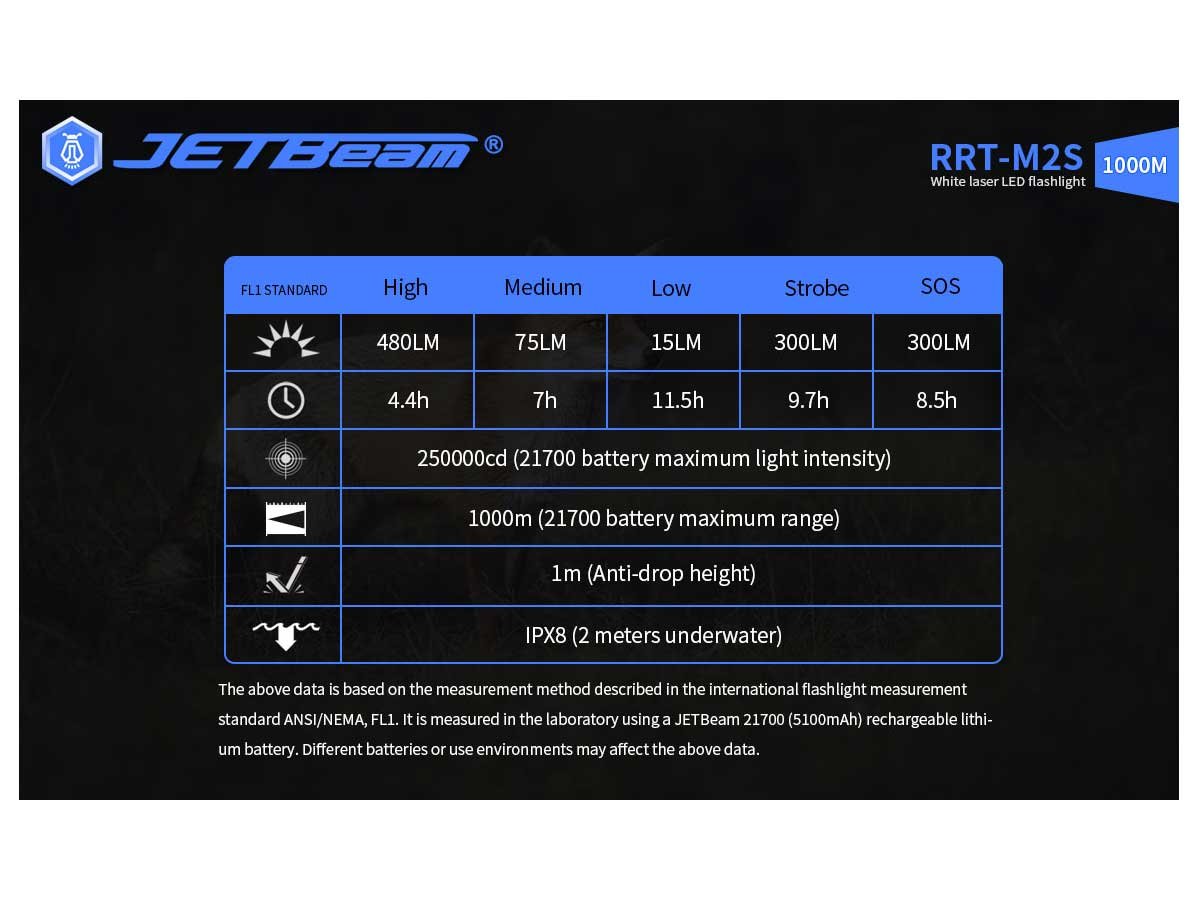 Jetbeam RRT-M2S White Laser Tactical Flashlight - 480 Lumens - Includes 1 x 5100mAh 21700