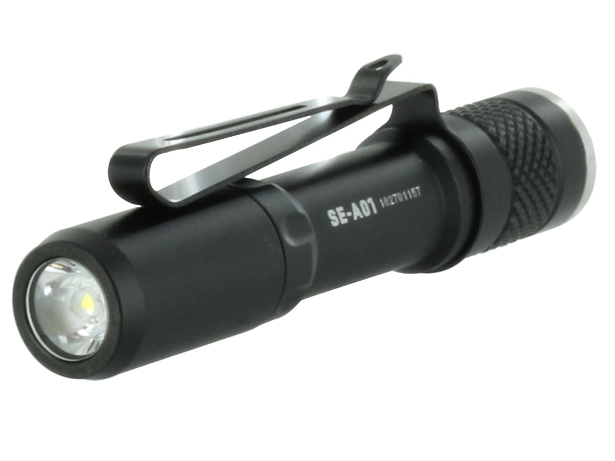 The SE-A01 may fit in the palm of your hand, but it's furious! If you're looking for a powerful flashlight that can tuck into your pocket, travel comfortably with you all day, uses common batteries, and won't break the bank, you've found your answer in the SE-A01. The LED is manufactured by industry leader CREE, and their XP-G model enables this flashlight to achieve ludicrous outputs (up to 130 lumens) on a single AAA battery. The onboard power management circuit protects both the LED and the battery, enabling you to enjoy a consistent beam strength whether your battery is brand new or on its last legs.