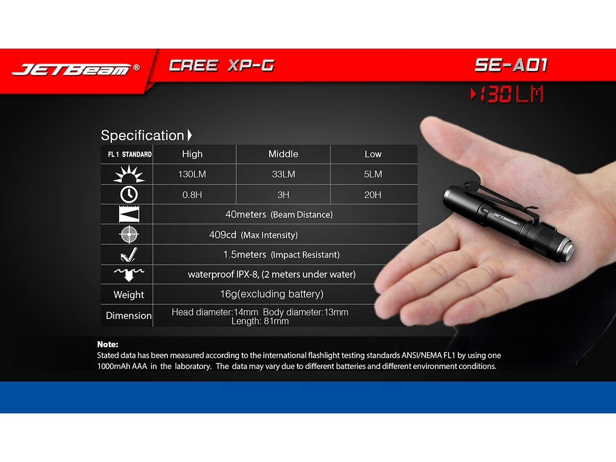 JETBeam SE-A01 Everyday Carry Flashlight - CREE XP-G LED - 130 Lumens - Uses 1 x AAA