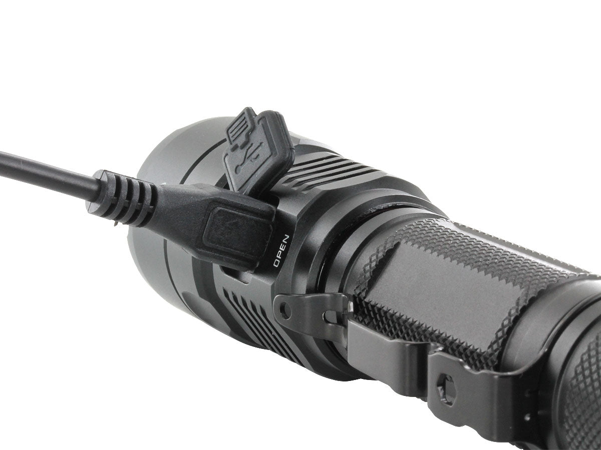 - Internally rechargeable when equipped with 18650 battery via micro-USB charging port on side of light