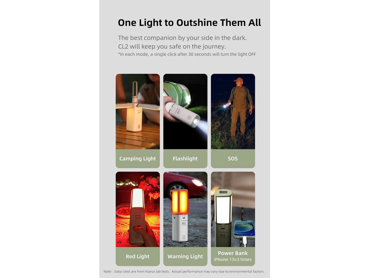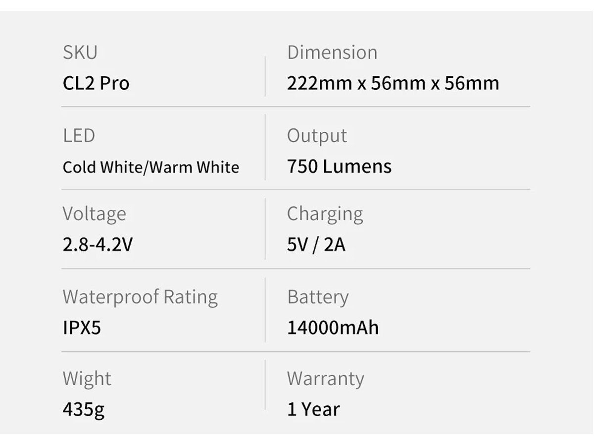The CL2 Pro has a 40% higher capacity battery than the CL2, enabling runtimes of 80 hours and more. This light also supports use as a power bank so you can keep devices like phones charged in an emergency or when you're away from home on your next camping trip.