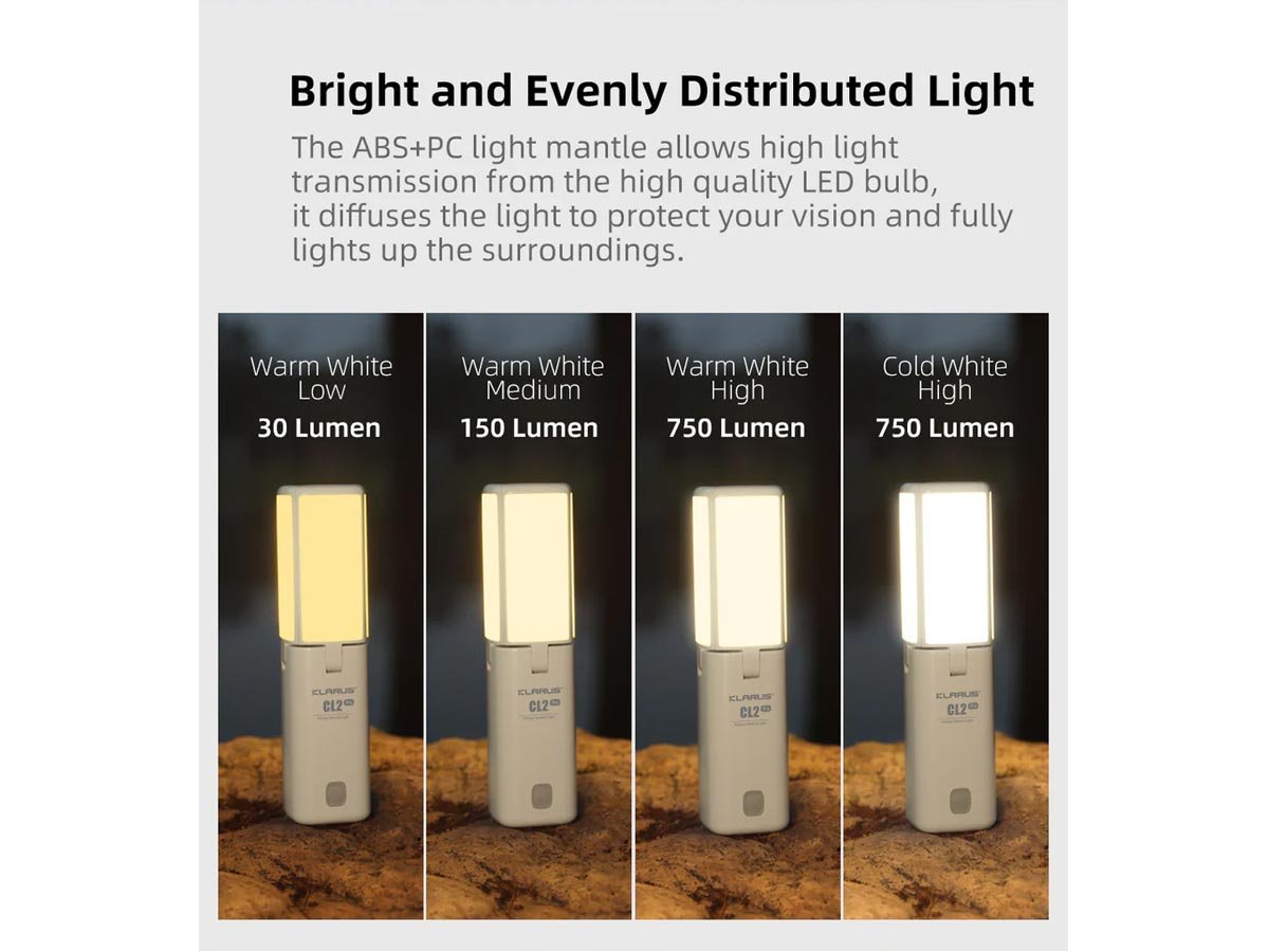 The Klarus CL2 Pro is a versatile lantern with folding panels for 360-degree area illumination and a flashlight mode for more focused light. With these outputs, lighting everything from campsites to your home is easier than ever. The CL2 Pro can cast both cold and warm white light as well as red light for various illumination options.