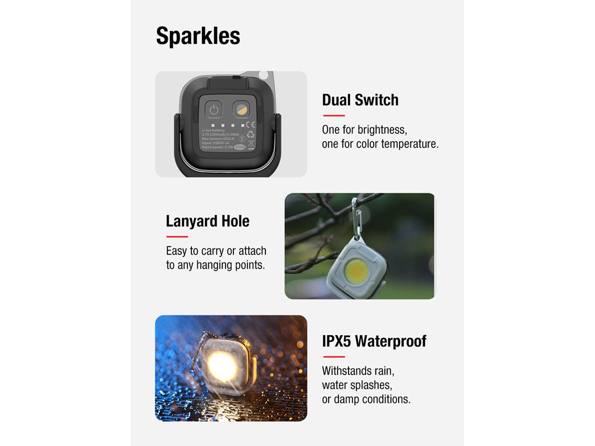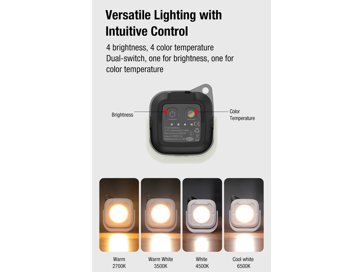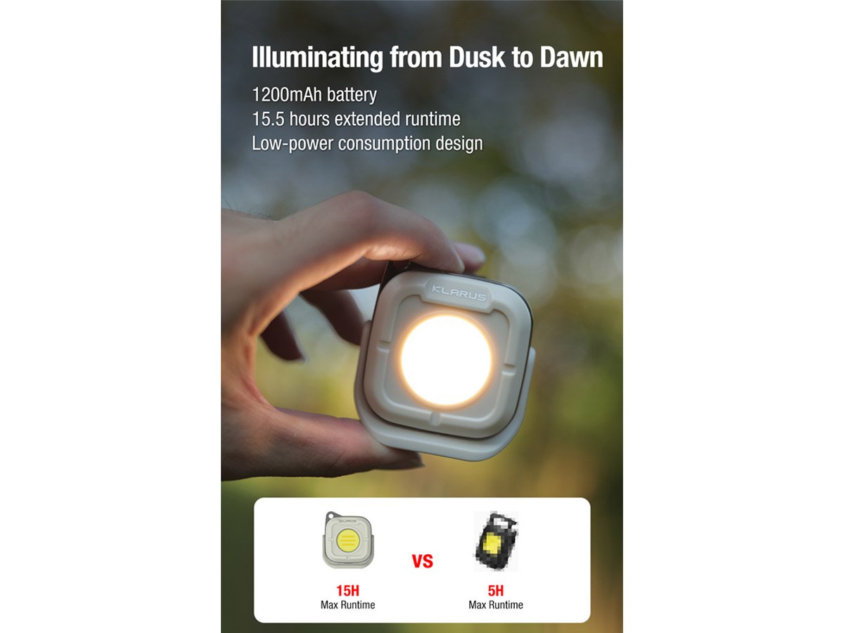Powerful lighting is as easy to use as a keychain accessory with the Klarus CL5 Micro Lantern! Its max output of 650 lumens generates a 105ft beam that easily illuminates your whole campsite. The rear side includes a dedicated button for adjusting color temperature, giving you maximum visibility at Cool White, accurate color rendering at White, or fog piercing lighting at Warm White and Warm.