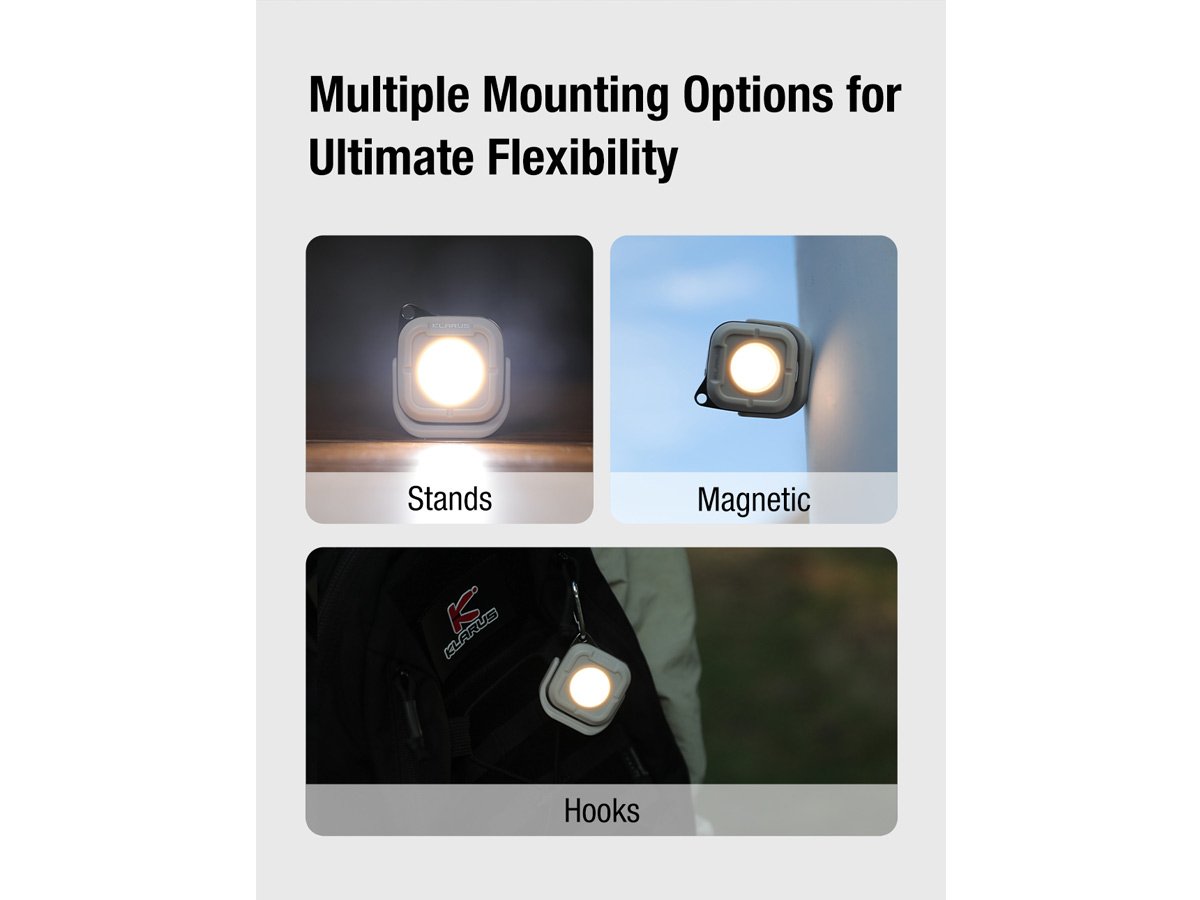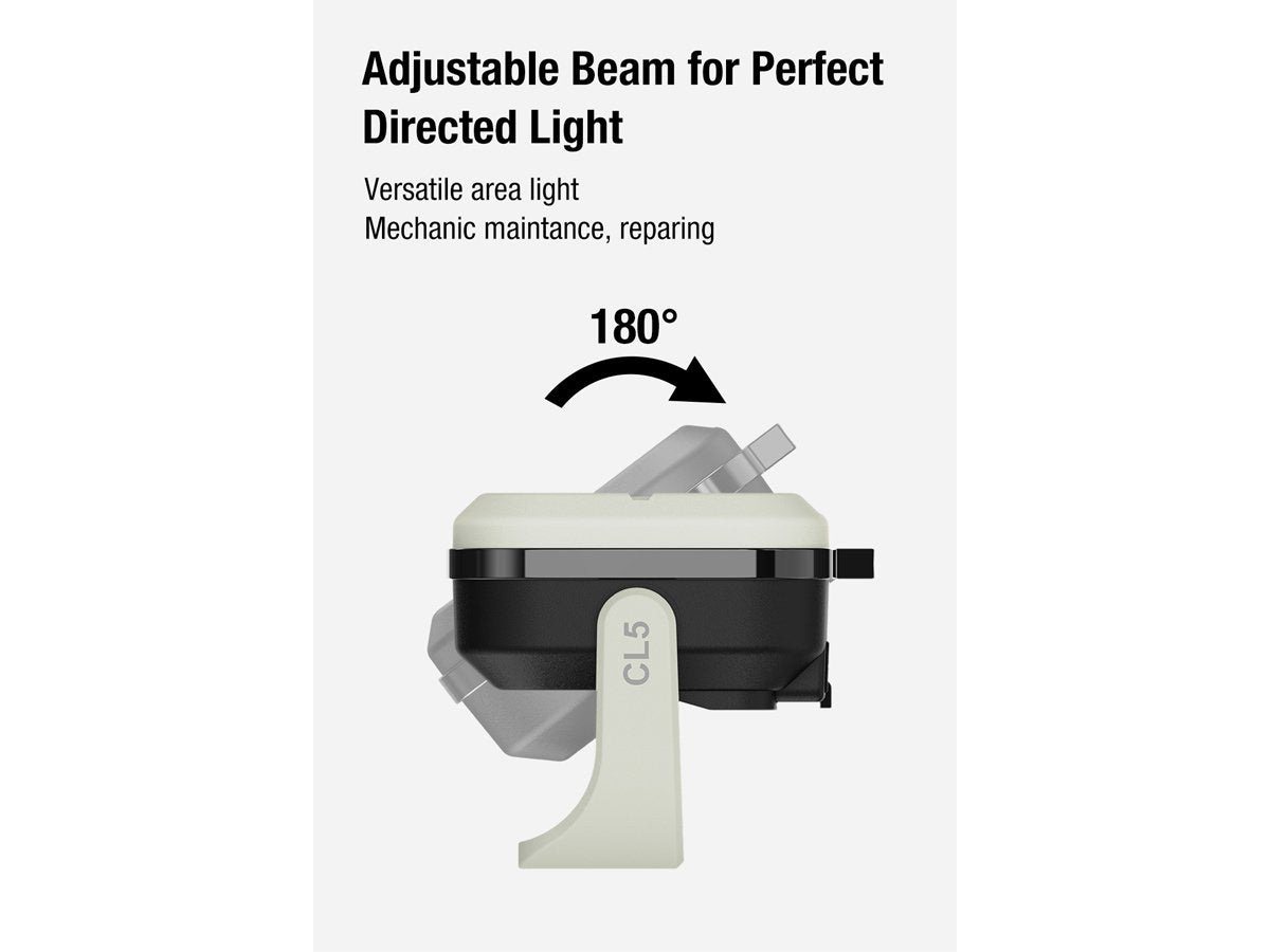 This micro lantern's 180° adjustable base lets it stand on its own for stationary lighting. This base is also magnetic, giving you hands-free lighting with any flat, metal surface. The CL5 also has a metal loop for clips, letting you attach it to your bag, belt, and more!