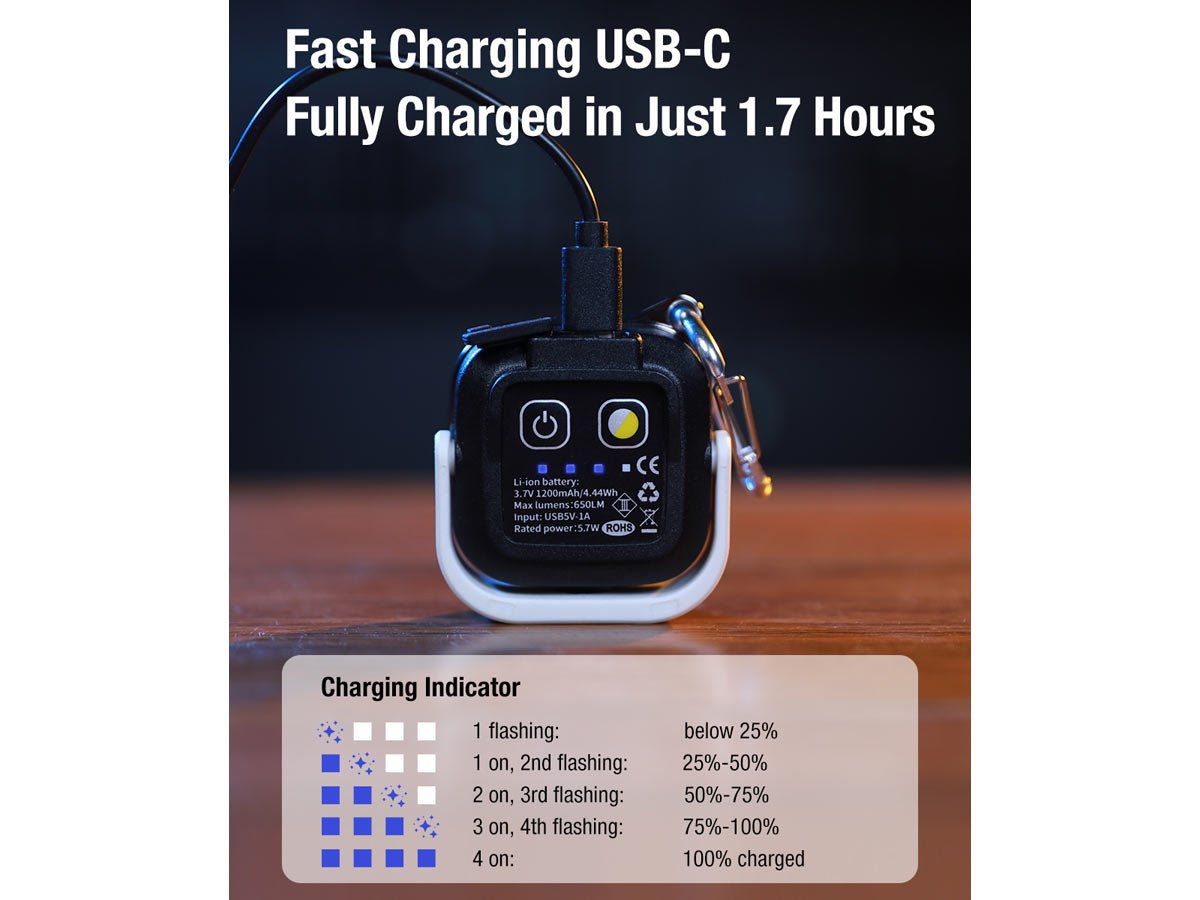 - USB-C rechargeable with wall adapters, powerbanks, and more!