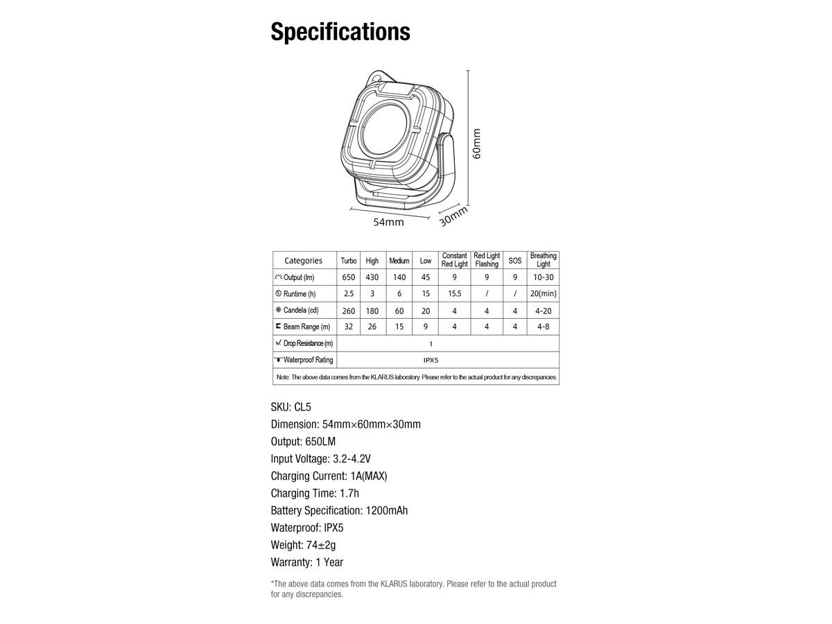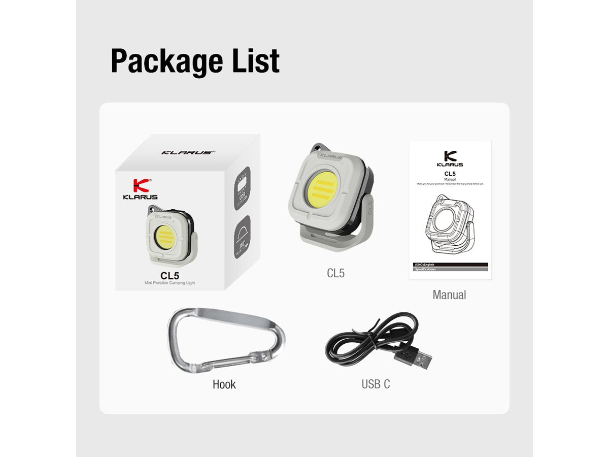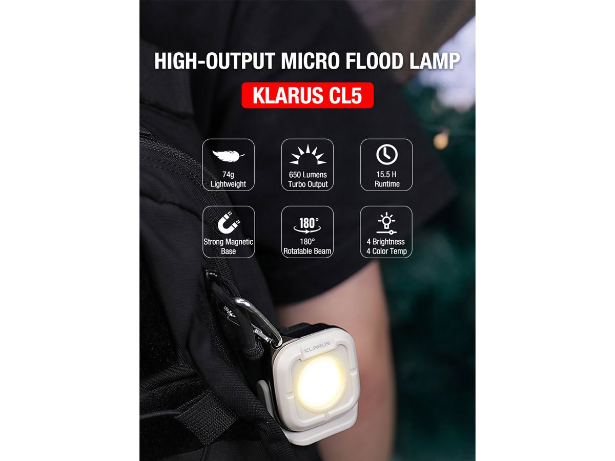 Klarus CL5 USB-C Rechargeable LED Micro Lantern - 650 Lumens - Uses Built-in 1200mAh Li-ion Battery Pack - Black or White