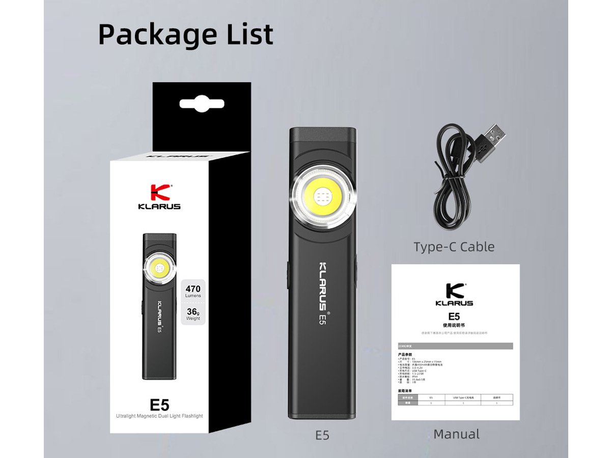 Klarus E5 USB-C Rechargeable EDC LED Flashlight