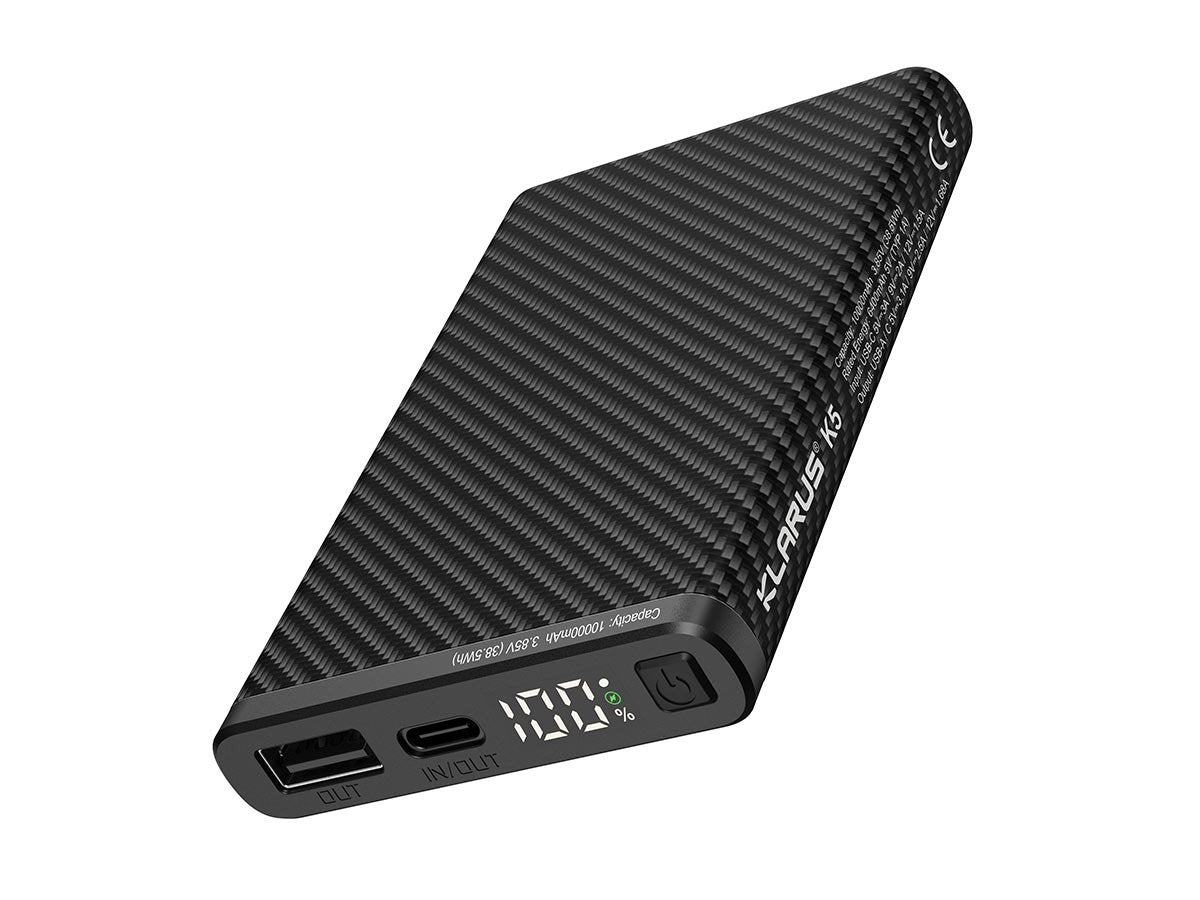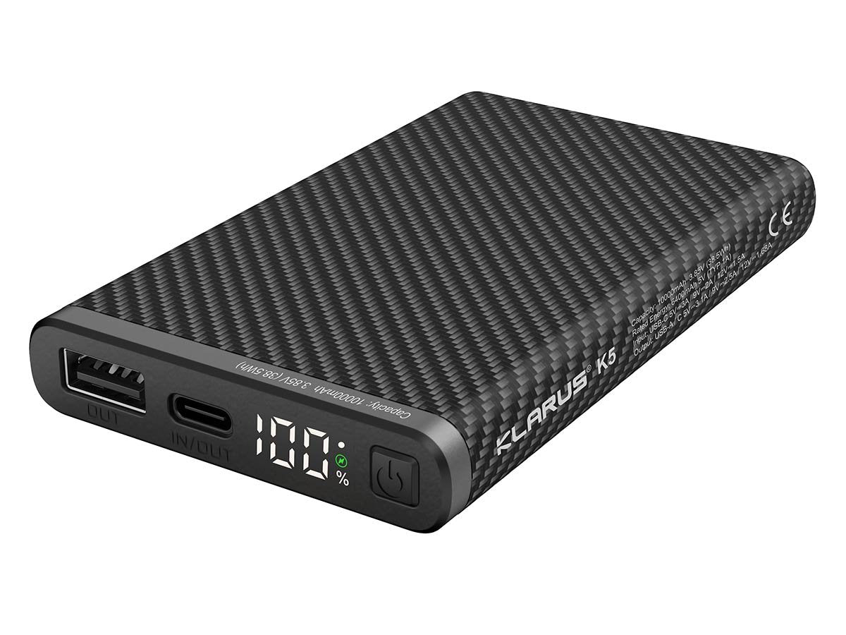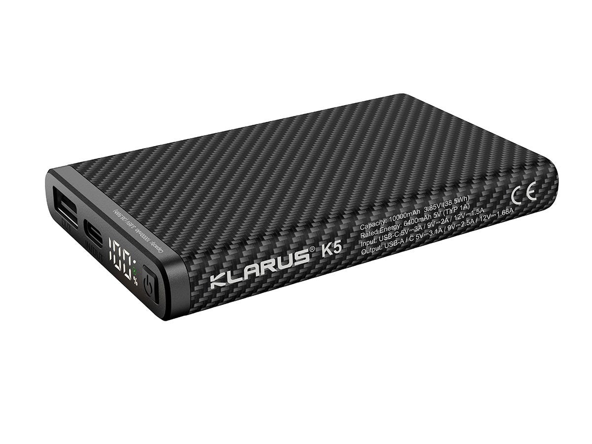 Klarus K5 10000mAh Waterproof Power Bank - Dual USB Ports - Carbon Fiber Build with Digital Screen