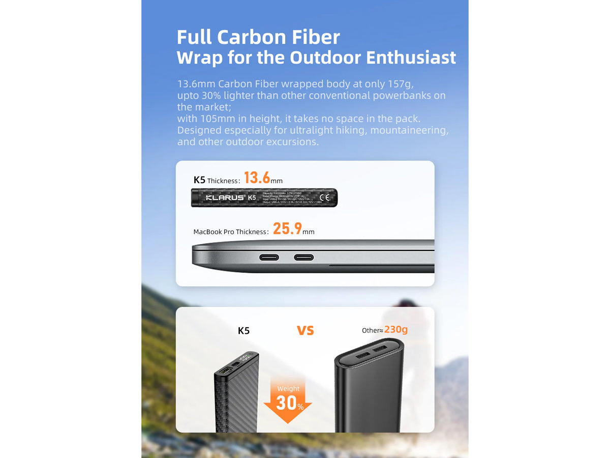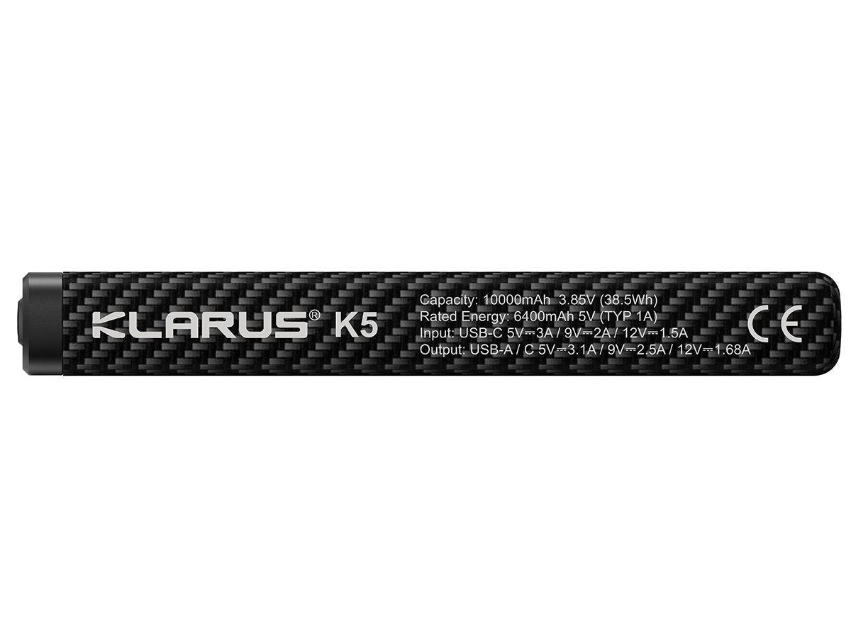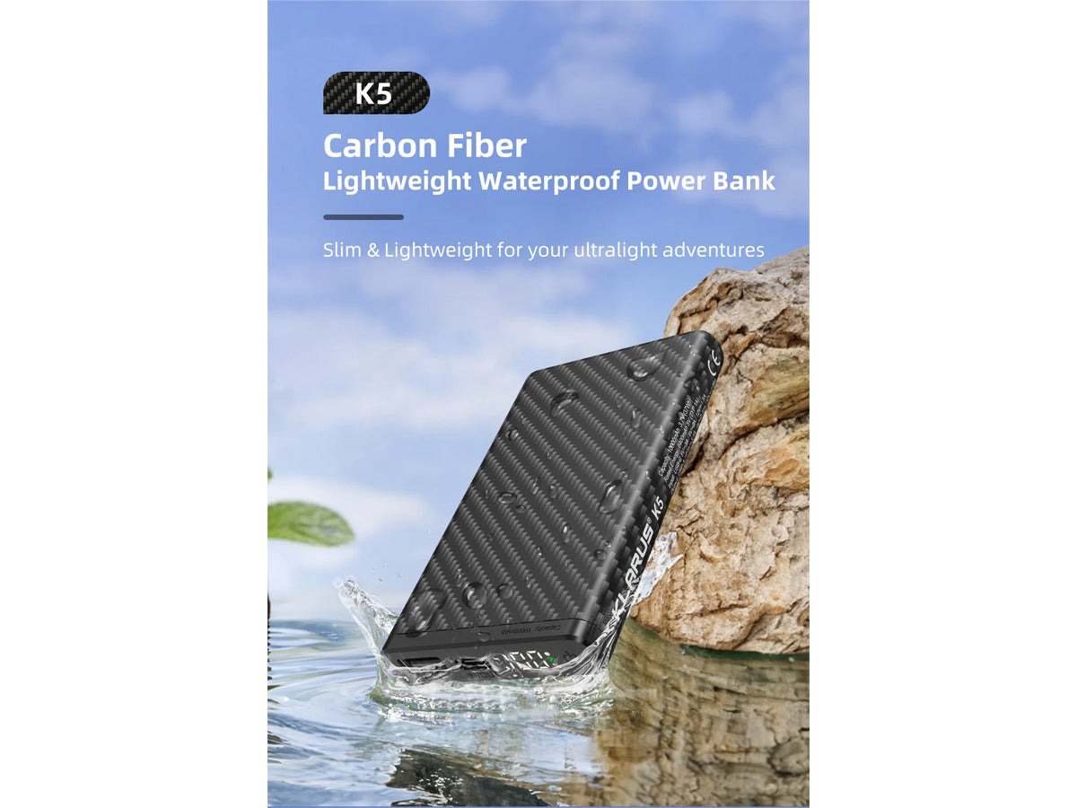 Klarus K5 10000mAh Waterproof Power Bank - Dual USB Ports - Carbon Fiber Build with Digital Screen