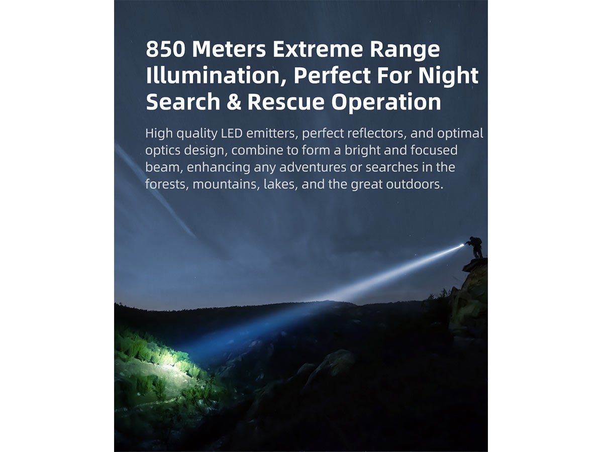 • Massive throw of 850 meters, great for search & rescue or long-range object identification