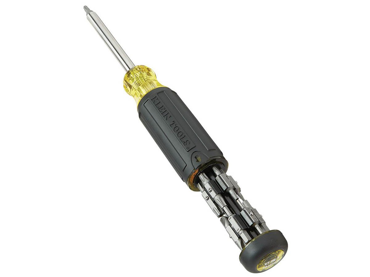 The Klein Tools 27-in-1 Multi-Bit Screwdriver provides the versatility and comfort you need to get the job done. Great for around-the-house maintenance or to take with you to the construction site, this screwdriver makes it easy to switch out bits at a moment's notice. Plus, with 27 bits to choose from, no job or task is too much for this screwdriver.