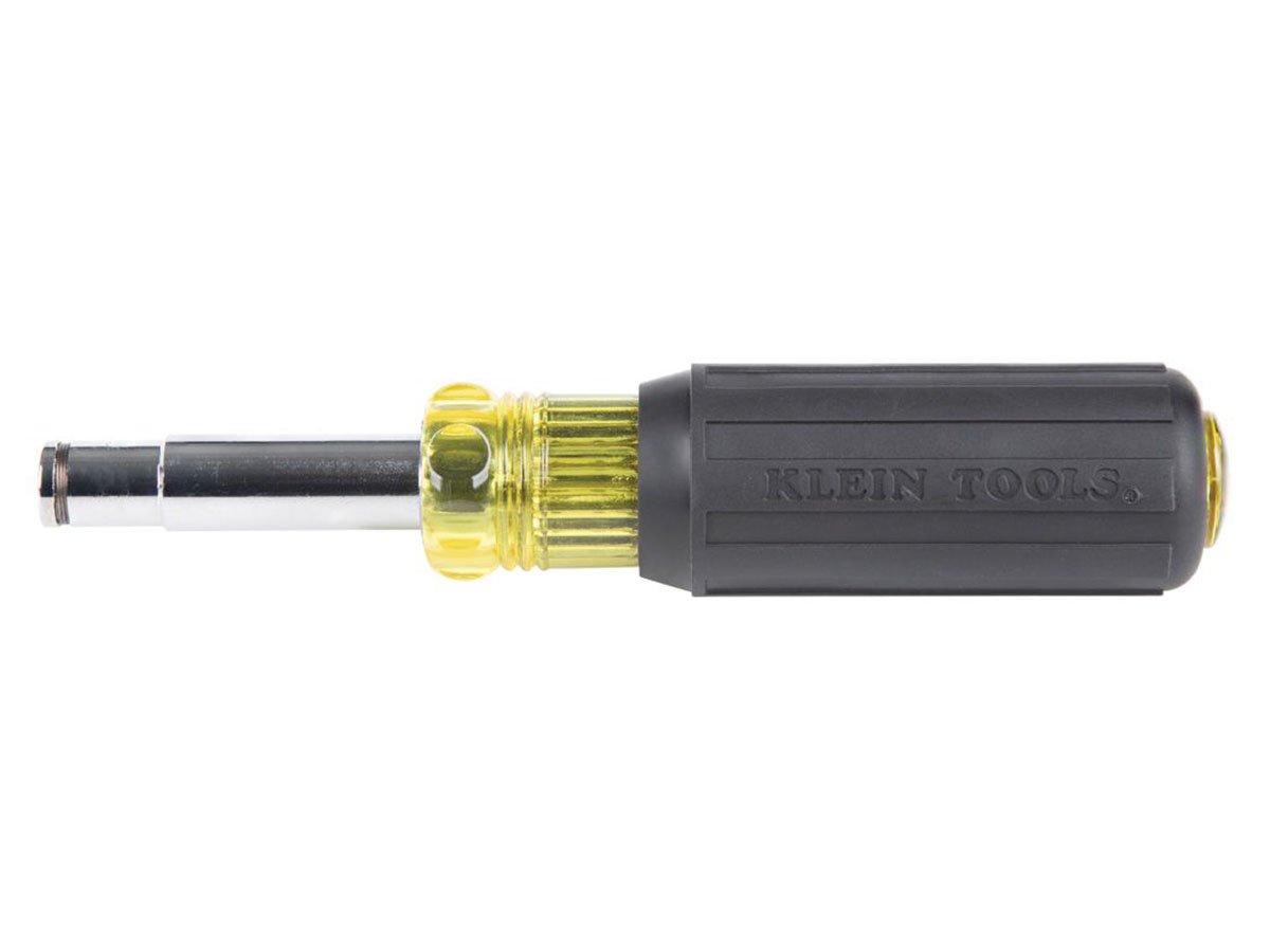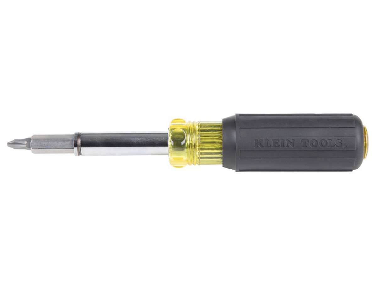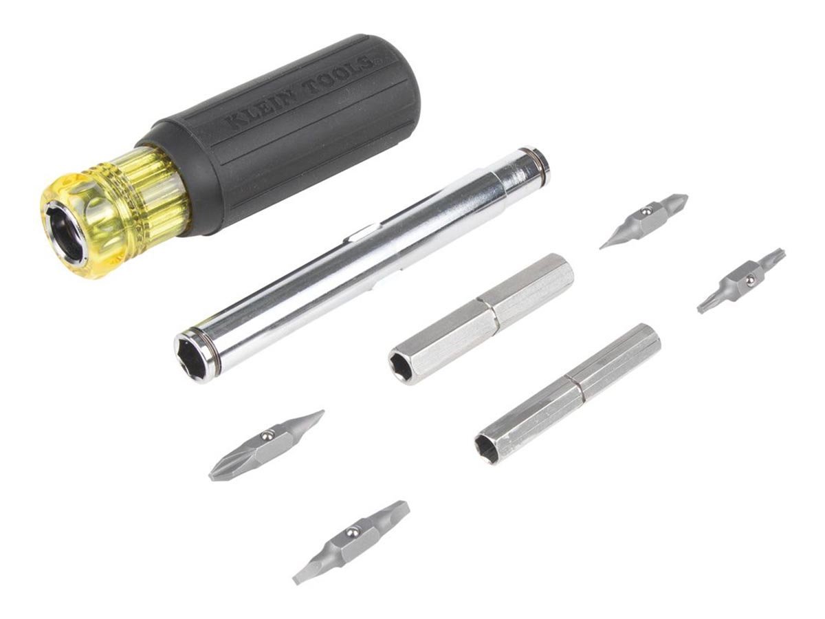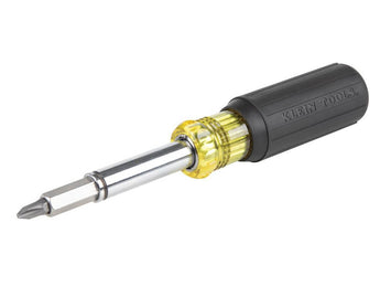 The Klein Tools 11 in 1 Magnetic Screwdriver is a multi-bit screwdriver which can hold 8 popular tips and accomodates 3 nut driver sizes. Whether around the house or on the job site, the innovative design of this screwdriver provides a 1/4" nut driver and 14 different screwdriver bits (including Torx bits!). This combination tool saves you money by not having to buy extra tools, and saves you storage space with this all-in-one design.