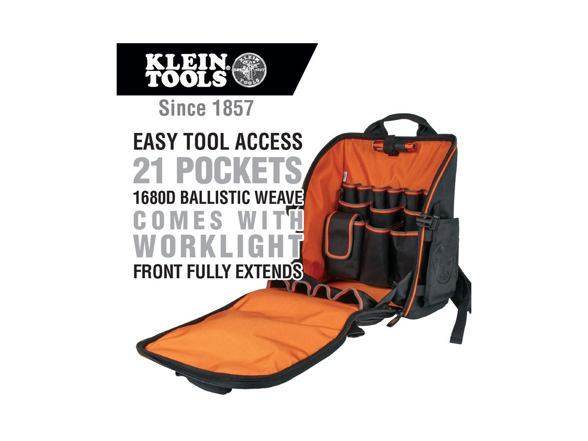 Klein Tools 55655 Tradesman Pro Tool Station/Tool Bag Backpack with Work Light