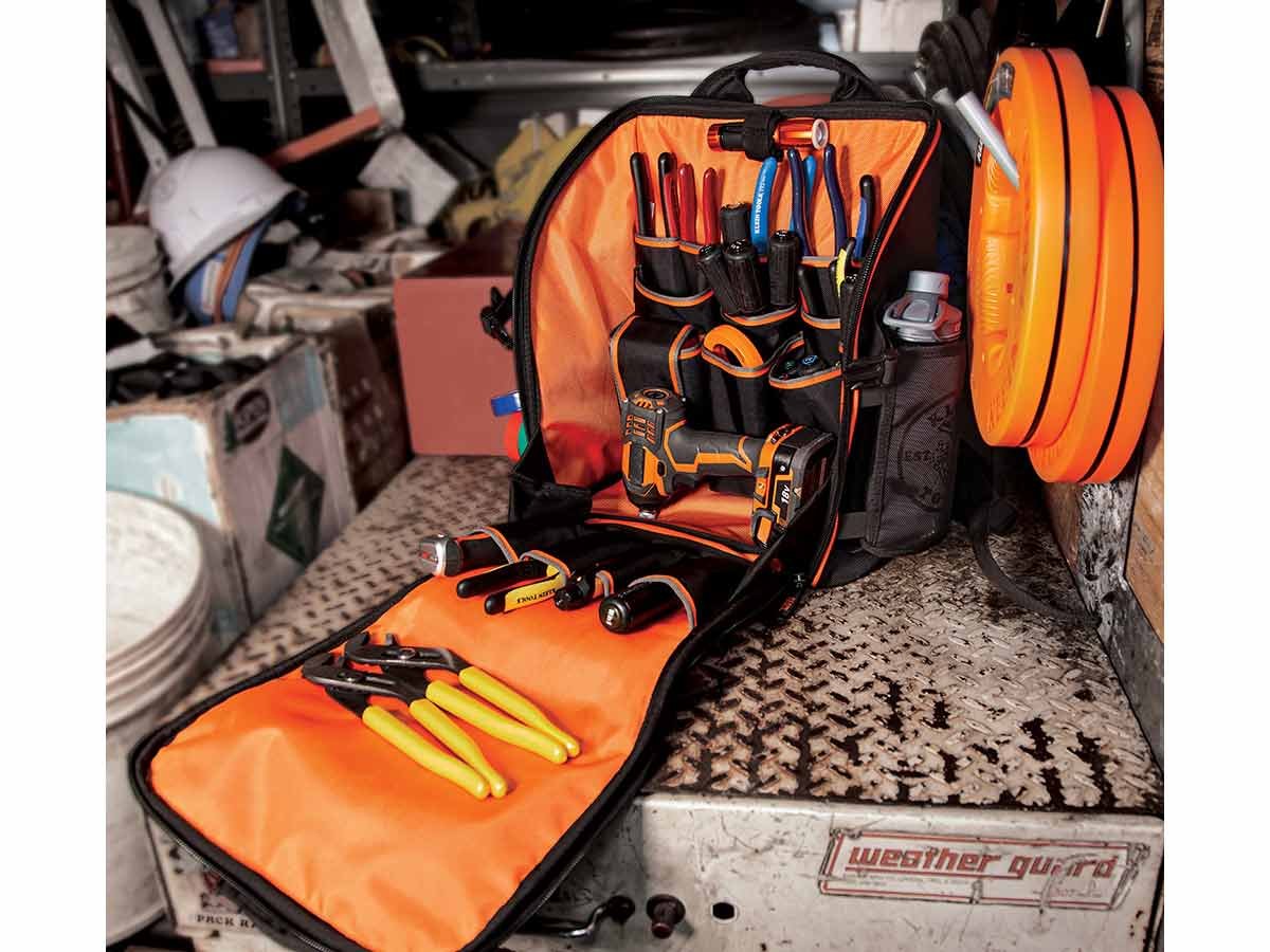 • Backpack with 21 pockets and large interior for maximized storage of tools and more