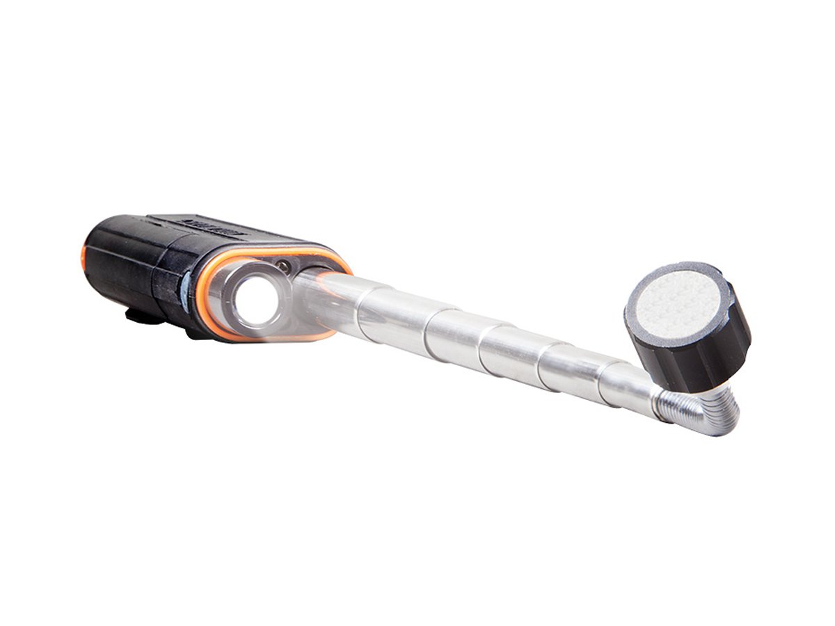 The magnet is mounted at the end of a 2" customizable gooseneck end, which you can bend to navigate different spaces and pick up items easily and precisely. This tool head is crafted from stainless steel for extreme durability perfect for workplace use every day. With a rubberized handle, it provides an ergonomic, secure grip that is easy to use. An integrated pocket clip enables easy, convenient storage of the tool when not in use. Collapsible, the Telescoping Magnetic LED Light and Pickup Tool is ultra-compact when closed and fits in the palm with ease. What's more, it only weighs 6.4 ounces, so it's a cinch to carry and keep in your pocket for work tasks.