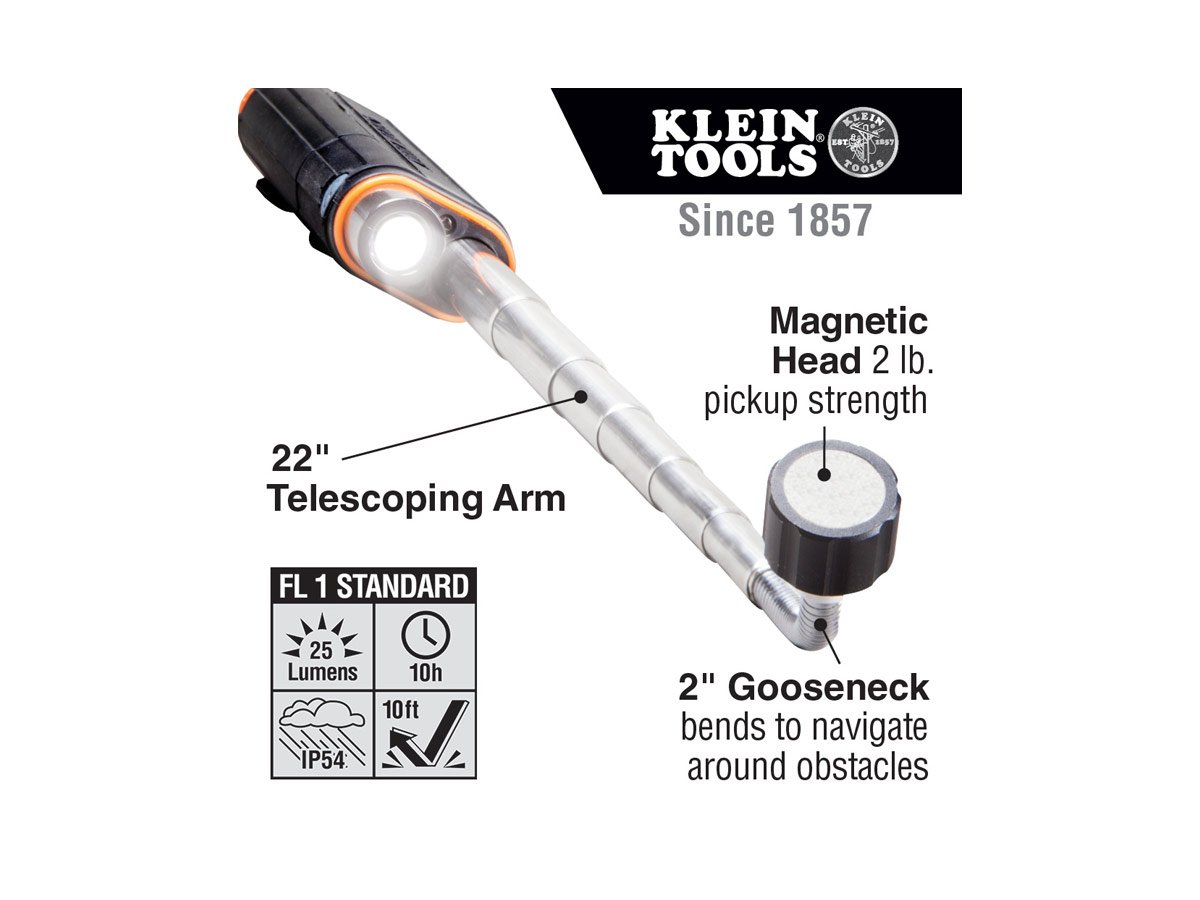 Klein Tools Telescoping Magnetic LED Light and Pickup Tool - 25 Lumens - Includes 2 x AAA