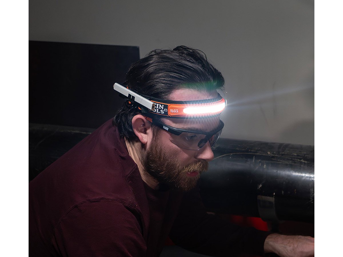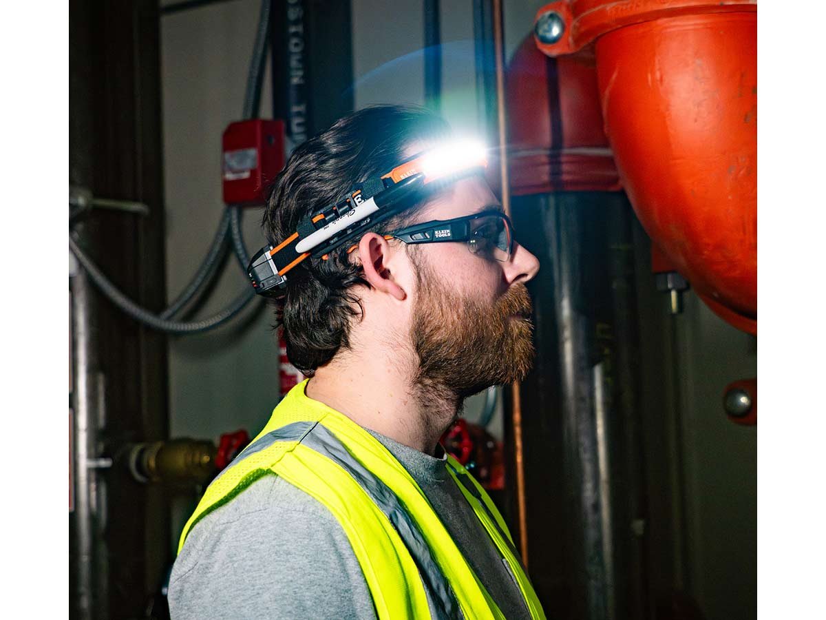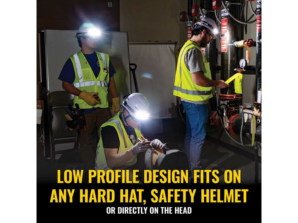 Klein Tools keeps its focus on work with the design of the Widebeam Headlamp's flexible, cooling headstrap which is compatible with every hard hat and safety helmet, as well as being able to be worn directly on the head. For an even more secure fit on helmets, hard hat clips are included for secure attachment. The secret is the rear-positioned battery, which conforms to different size hard hats and heads with a near-universal fit; that design is also helpful since it provides balance to the user and keeps the head low-profile to navigate tight spaces. This headlamp is built for rough-and-tumble, active use on the construction site!