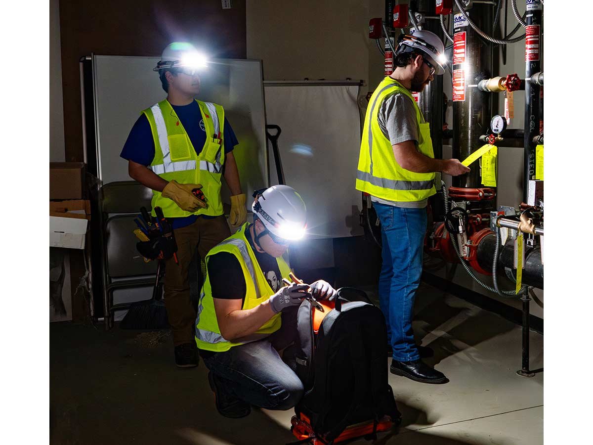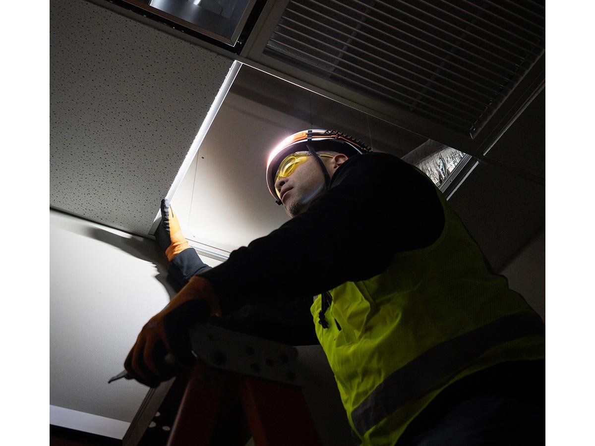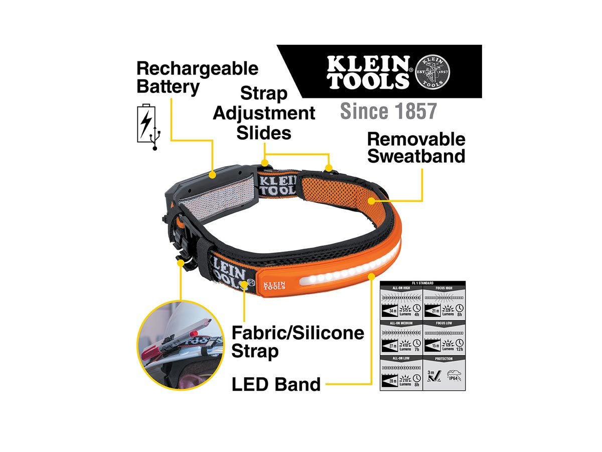 Klein Tools keeps its focus on work with the design of the Widebeam Headlamp's flexible, cooling headstrap which is compatible with every hard hat and safety helmet, as well as being able to be worn directly on the head. For an even more secure fit on helmets, hard hat clips are included for secure attachment. The secret is the rear-positioned battery, which conforms to different size hard hats and heads with a near-universal fit; that design is also helpful since it provides balance to the user and keeps the head low-profile to navigate tight spaces. This headlamp is built for rough-and-tumble, active use on the construction site!
