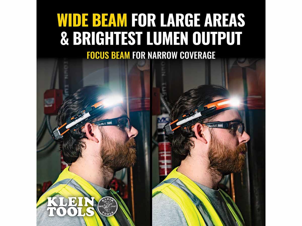 The Klein Tools Widebeam Headlamp is an all-in-one, hands-free work light great for all sorts of environments and complete with a plentiful amount of output types. Using a headband-length LED array, the Widebeam Headlamp can cast a full flood light in All-On mode or a more concentrated lighting configuration with the Focus mode. These two modes, each with multiple brightness levels, allow users to light a specific spot or a larger area outdoors. Focus mode allows you to selectively point a beam at your work, crucial when working with others. A brightness range between 120 and 575 lumens keeps you prepared for almost any scenario on the job, and grant a maximum runtime reaching 12 hours to last through work shifts. With its high-intensity LED design, the Widebeam Headlamp is capable of emitting a far-reaching beam of light!