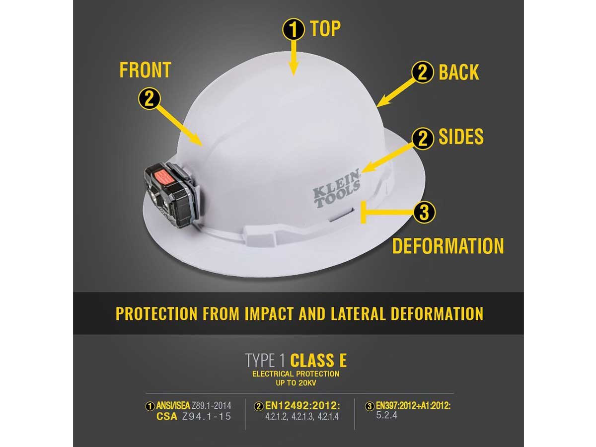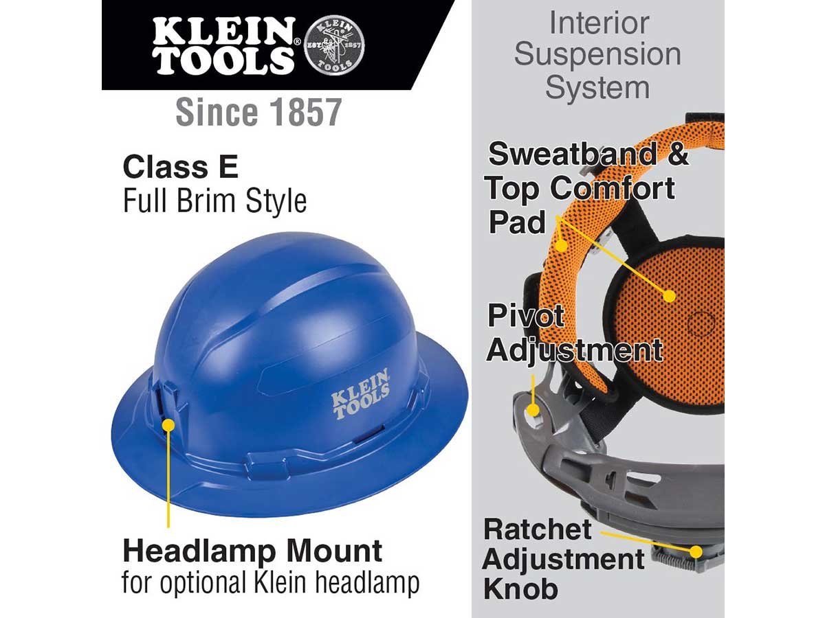 The included suspension system allows for improved air circulation to keep you cool when working under hot conditions. For easy adjustability, this hard hat features a large ratchet knob which can be used even when you are wearing gloves so that it doesn't disturb your workflow. The accessory slots on the front and back of the hard hat can be used to attach any compatible Klein Headlamp which uses the same bracket system. The slots on the sides can be used to add a face shield, hearing protection, or any other compatible attachment you might need.