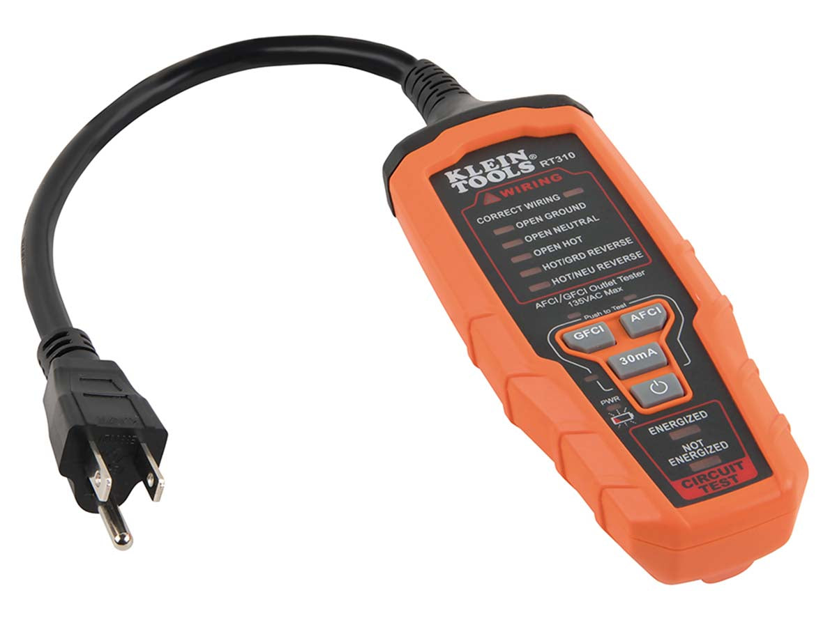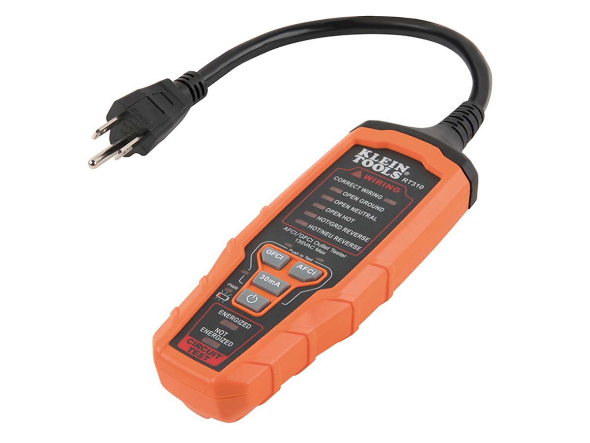 The Klein Tools AFCI and GFCI Outlet Tester is an electrical tester that will check the wiring condition of an outlet. It will also inspect and check AFCI and GFCI devices. Designed for use with American 120V electrical outlets, this tester is great for detecting and identifying common wiring faults. Powered by 3 AAA alkaline batteries, this outlet tester is a must-have for electricians and contractors so you can not only get the job done, but you'll also know when your tester needs a change of batteries with the low battery indicator.